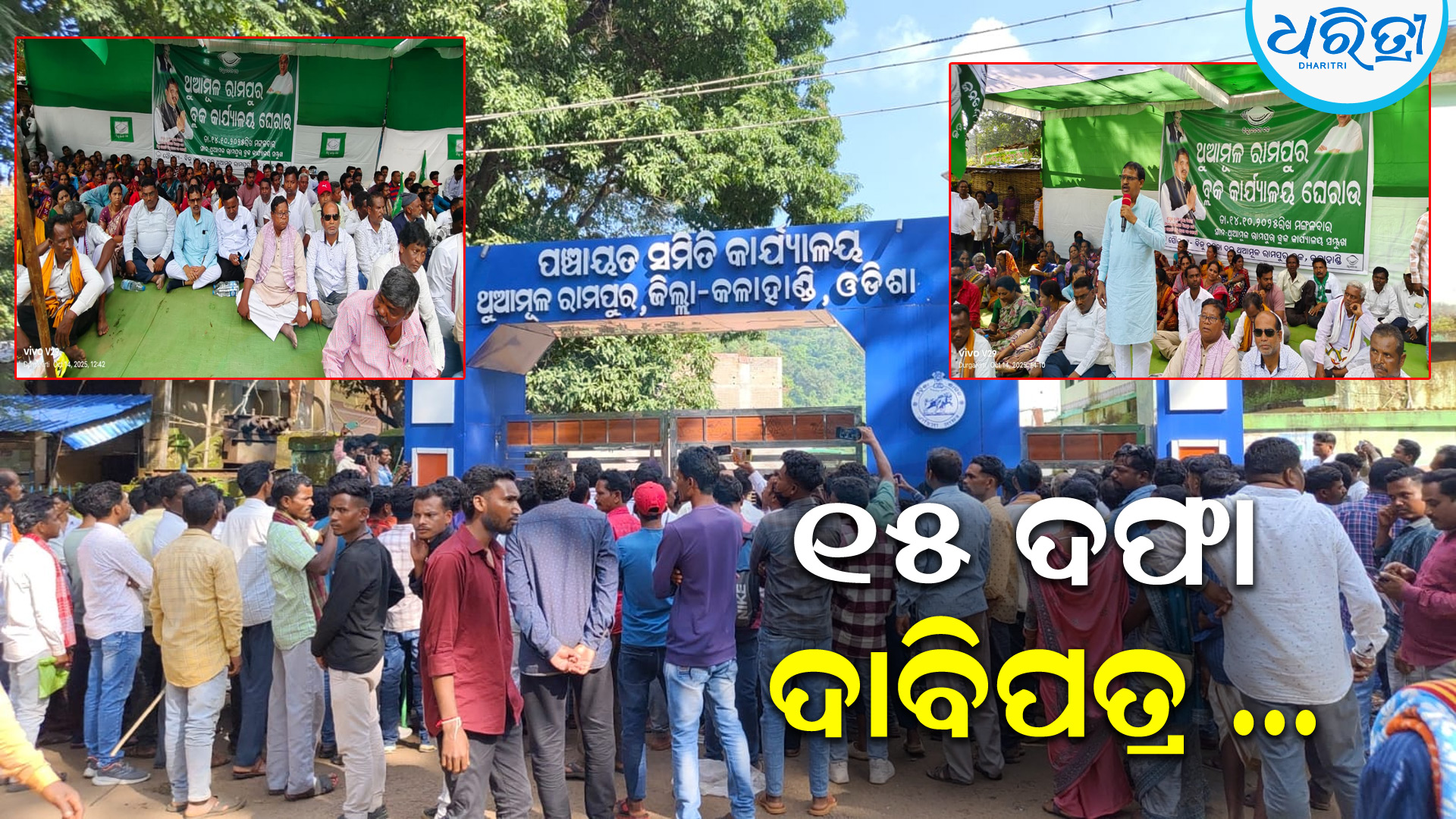 ଥୁଆମୂଳ ରାମପୁର,୧୪।୧୦(ଦୁର୍ଗା କୀର୍ତ୍ତି): କଳାହାଣ୍ଡି ଜିଲା ଥୁଆମୂଳ ରାମପୁର ବ୍ଳକ ବିଜେଡି ପକ୍ଷରୁ ୧୫ ଦଫା ଦାବି ନେଇ ବିଧାୟକ ତଥା ବିଜେଡି ଜିଲା ସଭାପତି ପ୍ରଦୀପ କୁମାର ଦିଶାରୀଙ୍କ ପ୍ରତ୍ୟକ୍ଷ ତତ୍ତ୍ୱାବଧାନରେ ମଙ୍ଗଳବାର ଦିନ ମାଁ ମାଣିକେଶ୍ବରୀ ମନ୍ଦିରରେ ମାଁଙ୍କ ପୂଜାର୍ଚ୍ଚନା ପରେ ବ୍ଳକର ସମସ୍ତ ବିଜେଡ଼ି କର୍ମକର୍ତ୍ତା ଏକତ୍ରିତ ଭାବରେ ଏକ ଜନ ସଂପର୍କ ପଦଯାତ୍ରାରେ ବାହାରିଥିଲେ। ସେମାନେ ବ୍ଳକ କାର୍ଯ୍ୟାଳୟ ସମ୍ମୁଖରେ ବିକ୍ଷୋଭ ପ୍ରଦର୍ଶନ କରିଥିଲେ।