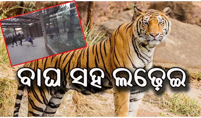 ବାଘ ସହ ଲଢ଼େଇ କରିବାକୁ କେବେ ଚିନ୍ତା କରିଛନ୍ତି କି? ଯଦି ନା ତେବେ ସୋସିଆଲ ମିଡିଆରେ ଏକ ଭିଡିଓ ଭାଇରାଲ ହେଉଛି। ଯାହା ଦେଖିଲେ ଆଶ୍ଚର୍ଯ୍ୟ ହେବେ। ଭିଡିଓଟି ପ୍ରାଣୀ ଉଦ୍ୟାନର। ଯେଉଁଠାରେ ଜଣେ ପର୍ଯ୍ୟଟକଙ୍କୁ ଏକ ବାଘ ସହିତ ବଳ କଷିବା ଖେଳ ଖେଳିବାକୁ ସୁଯୋଗ ଦିଆଯାଏ। ଏଥିରେ କାଚର ଗୋଟିଏ ପାର୍ଶ୍ୱରେ ବାଘ ଏବଂ ଅନ୍ୟ ପଟେ ଜଣେ ବ୍ୟକ୍ତିଙ୍କୁ କଠିନ କରିଶ୍ରମ କରିବାକୁ ପଡ଼ିଥାଏ। ମଝିରେ ରହିଥାଏ ଗୋଟିଏ ମୋଟା ଦଉଡ଼ି।