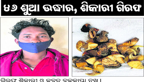 ଭୁବନେଶ୍ୱର(ବ୍ୟୁରୋ)/ବାରିପଦା ଅଫିସ,୧୭ା୨:ମୟୂରଭଞ୍ଜ ଜିଲା ଯଶିପୁର ଥାନା ତଥା କରଞ୍ଜିଆ ବନଖଣ୍ଡ ଦୁଧିଆଣୀ ରେଞ୍ଜ ଅଧୀନ ପଡ଼ାଗଡ ଗ୍ରାମ ନିକଟରେ କ୍ରାଇମ୍ବ୍ରାଞ୍ଚର ସ୍ପେଶାଲ ଟାସ୍କ ଫୋର୍ସ (ଏସ୍ଟିଏଫ୍) ଚଢ଼ାଉ କରି ଜଣେ ବନ୍ୟଜନ୍ତୁ ଶିକାରୀଙ୍କୁ ଗିରଫ କରିଛି। ତାଙ୍କଠାରୁ ୨ଟି ବାଘ ଦାନ୍ତ, ୨୯ ବାଘ ନଖ, ସାଢେ ୩ କେଜି ବଜ୍ରକାପ୍ତା କାତି ଜବତ କରାଯାଇଛି। ଏଥିସହ ୪୬ଟି ଶୁଆକୁ ମଧ୍ୟ ଉଦ୍ଧାର କରାଯାଇଛି। ଅଭିଯୁକ୍ତ ହେଲେ ଏହି ଥାନା ଅନ୍ତର୍ଗତ ମିରିଗିନେଂଟି ଅଞ୍ଚଳର ନନ୍ଦ ବାଗେ। ତାଙ୍କୁ ଏସ୍ଟିଏଫ୍ କରଞ୍ଜିଆ ବନ ବିଭାଗକୁ ହସ୍ତାନ୍ତର କରିବା ପରେ ତାଙ୍କ ବିରୋଧରେ ଏକ ମାମଲା ରୁଜୁ କରାଯାଇ କୋର୍ଟଚାଲାଣ କରାଯାଇଥିଲା। ଜାମିନ ନାମଞ୍ଜୁର ହେବାରୁ ତାଙ୍କୁ ବିଚାର ବିଭାଗୀୟ ହାଜତକୁ ପଠାଇ ଦିଆଯାଇଛି।