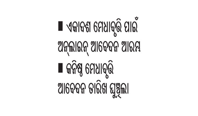ସେହିପରି ୨୦୨୧-୨୨ ଶିକ୍ଷା ବର୍ଷରେ ଏକାଦଶ ଶ୍ରେଣୀରେ ଅଧ୍ୟୟନରତ ୧ ହଜାର ମେଧାବୀ ଛାତ୍ରୀଛାତ୍ରଙ୍କୁ ୫ହଜାର ଟଙ୍କା ଲେଖାଏ ‘ପଠାଣି ସାମନ୍ତ ଗଣିତ ମେଧାବୃତ୍ତି’ ପ୍ରଦାନ ପାଇଁ ଷ୍ଟେଟ୍ ସ୍କଲାରଶିପ୍ ପୋର୍ଟାଲ ମାଧ୍ୟମରେ ଆବେଦନ ପାଇଁ ସୋମବାର ଉଚ୍ଚ ମାଧ୍ୟମିକ ଶିକ୍ଷା ନିର୍ଦ୍ଦେଶାଳୟ ପକ୍ଷରୁ ବିଜ୍ଞପ୍ତି ପ୍ରକାଶ ପାଇଛି। ସେହିପରି ଏକାଦଶ ଶ୍ରେଣୀରେ ଅଧ୍ୟୟନରତ ୧୦ହଜାର ଗରିବ ଓ ମେଧାବୀ ଛାତ୍ରୀଛାତ୍ରଙ୍କୁ ବାର୍ଷିକ ୩ହଜାର ଟଙ୍କା ଲେଖାଏ କନିଷ୍ଠ ମେଧାବୃତ୍ତି ପ୍ରଦାନ ପାଇଁ ଆବେଦନ ଅବଧିକୁ ବୃଦ୍ଧି କରାଯାଇଛି। ଆବେଦନ ପାଇଁ ଶେଷ ତାରିଖ ଡିସେମ୍ବର ୫ ରହିଥିଲା। କିନ୍ତୁ ଶେଷ ତାରିଖ ସୁଦ୍ଧା ମାତ୍ର ୧,୯୨୮ ଛାତ୍ରୀଛାତ୍ର ଆବେଦନ କରିଥିବାରୁ ଏହାକୁ ଆସନ୍ତା ୨୭ ତାରିଖକୁ ବୃଦ୍ଧି କରାଯାଇଛି। ଏହି ବୃତ୍ତି ପାଇଁ ସିବିଏସ୍ଇ, ଆଇସିଏସ୍ଇ, ସିଏଚ୍ଏସ୍ଇ ଆଦି ବୋର୍ଡ ଅଧୀନରେ ପଢୁଥିବା ଶତକଡ଼ା ୬୦ ପ୍ରତିଶତ ନମ୍ବର ରଖିଥିବା ଛାତ୍ରୀଛାତ୍ରମାନେ ଆବେଦନ କରିପାରିବେ। ଛାତ୍ରୀଛାତ୍ରମାନେ ବହୁ ସଂଖ୍ୟାରେ ଆବେଦନ କରିବା ପାଇଁ ଉତ୍ସାହିତ କରିବାକୁ ଅଧକ୍ଷମାନଙ୍କୁ ନିବେଦନ କରାଯାଇଛି। ଛାତ୍ରୀଛାତ୍ରମାନେ ଏହାର ସୁଯୋଗ ନେବା ସଙ୍ଗେ ସଙ୍ଗେ ଅଧ୍ୟୟନରେ ମନଯୋଗୀ ହୁଅନ୍ତୁ ବୋଲି ବିଭାଗର ପ୍ରମୁଖ ଶାସନ ସଚିବ ସତ୍ୟବ୍ରତ ସାହୁ ଆହ୍ବାନ ଦେଇଛନ୍ତି।
