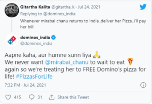 ଏ ସମ୍ପର୍କରେ ଅବଗତ ହେବା ପରେ ଚାନ୍ନୁଙ୍କୁ ଆଜୀବନ ମାଗଣାରେ ପିଜା ଯୋଗାଇବାକୁ ପ୍ରସ୍ତାବ ଦେଇଛି ଲୋକପ୍ରିୟ ପିଜା ରେଷ୍ଟୁରାଣ୍ଟ ଡୋମିନ୍ସ। “ଆପଣ କହିଲେ, ଆଉ ଆମେ ଶୁଣିନେଲୁ। ଆମେ ଚାହୁଁନୁ ତୁମେ ପିଜା ପାଇଁ ଅପେକ୍ଷା କର। ଏଣୁ ଆମେ ଆଜୀବନ ପାଇଁ ମାଗଣାରେ ତୁମକୁ ପିଜା ଯୋଗାଇବୁ” ବୋଲି ଡୋନିନ୍ସ ଇଣ୍ଡିଆ ପକ୍ଷରୁ ଟୁଇଟ୍ କରାଯାଇଛି।