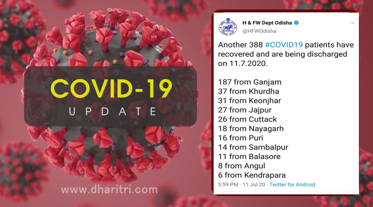 ରାଜ୍ୟରେ ଆଉ ୩୮୮ କରୋନା ଆକ୍ରାନ୍ତ ସୁସ୍ଥ: ଗଞ୍ଜାମରୁ ସର୍ବାଧିକ ସୁସ୍ଥ