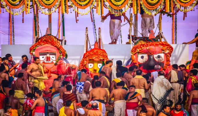 ପୁରୀ ଅଫିସ, ୪।୬: ରବିବାର ପବିତ୍ର ଦେବସ୍ନାନ ପୂର୍ଣ୍ଣିମା। ସେଥିପାଇଁ ସଜେଇ ହୋଇଛି ସ୍ନାନବେଦି। ଅପେକ୍ଷା କରିଛି ମହାପ୍ରଭୁଙ୍କ ଆଗମନକୁ। ଆଉ କେଇ ଘଣ୍ଟା ପରେ ଚତୁର୍ଦ୍ଧାବିଗ୍ରହ ରନତ୍ବେଦୀରୁ ସ୍ନାନବେଦିକୁ ଓହ୍ଲାଇ ଆସିବେ। ପହଣ୍ଡି ପାଇଁ ରନତ୍ସିଂହାସନ ତଳେ ଚାରମାଳ ବନ୍ଧାଯିବା ସହ ଦଇତାପତି ସେବାୟତଙ୍କ ଦ୍ୱାରା ଦାରୁଦିଅଁଙ୍କୁ ସେନାପଟା ଲାଗି କରାଯାଇଛି। ରବିବାର ଭଉଣୀଭାଇଙ୍କ ସହ ସ୍ନାନବେଦିରେ ୧୦୮ ଗରା ସୁବାସିତ ଜଳରେ ପ୍ରତ୍ୟକ୍ଷ ସ୍ନାନ କରିବେ ଚତୁର୍ଦ୍ଧାବିଗ୍ରହ। ସ୍ନାନ ପରେ ହାତୀବେଶରେ ଶ୍ରଦ୍ଧାଳୁଙ୍କୁ ଦର୍ଶନ ଦେବେ। ସ୍ନାନଯାତ୍ରା ଦେଖିବା ସହ ମହାପ୍ରଭୁଙ୍କ ସାନ୍ନିଧ୍ୟ ଲାଭ କରିବାର ସୁଯୋଗ ପାଉଥିବାରୁ ଶ୍ରୀକ୍ଷେତ୍ରରେ ଭକ୍ତଙ୍କ ସମାଗମ ବଢ଼ିବାରେ ଲାଗିଛି। ଭକ୍ତଙ୍କ ଭିଡ଼କୁ ଦୃଷ୍ଟିରେ ରଖି ପ୍ରଶାସନ ପକ୍ଷରୁ ମାର୍କେଟ ଛକଠାରୁ ବ୍ୟାରିକେଡ୍ ବ୍ୟବସ୍ଥା କରାଯିବା ସହ ପୋଲିସ ପ୍ରଶାସନ ପକ୍ଷରୁ ଆଇନଶୃଙ୍ଖଳା, ଭିଡ଼ ନିୟନ୍ତ୍ରଣ ଓ ଟ୍ରାଫିକ ନିୟନ୍ତ୍ରଣ ପାଇଁ ସ୍ବତନ୍ତ୍ର ପଦକ୍ଷେପ ଗ୍ରହଣ କରାଯାଇଛି। ଚଳିତବର୍ଷ ପଞ୍ଚସ୍ତରୀୟ ସୁରକ୍ଷା ବ୍ୟବସ୍ଥା ଗ୍ରହଣ କରାଯିବା ସହ ସମୁଦାୟ ୩୫୦୦ଜଣ ସୁରକ୍ଷାକର୍ମୀ ଓ ୬୦ ପ୍ଲାଟୁନ ପୋଲିସ ଫୋର୍ସ ମୁତୟନ ହେବେ। ସେପଟେ ଭକ୍ତଙ୍କ ସୁରକ୍ଷା ଓ ଶୃଙ୍ଖଳିତ ଦର୍ଶନ ପାଇଁ ବ୍ୟାରିକେଡର ବ୍ୟବସ୍ଥା କରାଯାଇଥିବା ବେଳେ ଶ୍ରୀମନ୍ଦିର ଭିତରେ ମଧ୍ୟ ସୁରକ୍ଷା ବ୍ୟବସ୍ଥାକୁ ସମ୍ପୂର୍ଣ୍ଣ କଡ଼ାକଡ଼ି କରାଯାଇଛି। ଏଥିସହ ମହାପ୍ରଭୁଙ୍କ ସ୍ନାନଯାତ୍ରା ପାଇଁ ନୀତିନିର୍ଘଣ୍ଟ ନିର୍ଦ୍ଧାରିତ ହୋଇଛି। ରବିବାର ଭୋର ୩.୩୦ରେ ମହାପ୍ରଭୁଙ୍କ ମଙ୍ଗଳାର୍ପଣ କରାଯାଇ ଧାଡି ପହଣ୍ଡିରେ ଚତୁର୍ଦ୍ଧାବିଗ୍ରହଙ୍କୁ ସ୍ନାନବେଦି ଉପରକୁ ବିଜେ କରାଯିବ। ଭୋର ୪ଟାରୁ ପହଣ୍ଡି ଆରମ୍ଭ ହୋଇ ସକାଳ ୬ଟା ସୁଦ୍ଧା ଶେଷ ହେବା ପରେ ମଙ୍ଗଳଆଳତି, ମଇଲମ ଓ ଅନ୍ୟାନ୍ୟ ନୀତି କରାଯାଇ ସକାଳ ୯.୩୦ରୁ ସାଢେ ୧୧ଟା ମଧ୍ୟରେ ଜଳଲାଗି ନୀତି ଅନୁଷ୍ଠିତ ହେବ। ଗରାବଡୁ ସେବକମାନେ ସଂଗୃହୀତ ଜଳକୁ ସ୍ନାନବେଦିକୁ ଆଣିବା ପରେ ପଞ୍ଚ ଉପଚାର ବିଧିରେ ମେକାପଙ୍କ ସହାୟତାରେ ଜଳଲାଗି କରାଯିବ। ପରେ ମହାପ୍ରଭୁଙ୍କ ଛେରାପହଁରା ନୀତି ବଢିବା ପରେ ମଧ୍ୟାହ୍ନ ୧୨.୪୫ରୁ ଅପରାହ୍ନ ୨.୩୦ ମଧ୍ୟରେ ହାତୀବେଶ କରାଯାଇ ଭୋଗ ଅନୁଷ୍ଠିତ ହେବ। ପରେ ଦୁର୍ଲଭ ହାତୀବେଶକୁ ଶ୍ରଦ୍ଧାଳୁମାନେ ବଡ଼ଦାଣ୍ଡ ସମେତ ସ୍ନାନମଣ୍ଡପର ଅତି ନିକଟରୁ ସନ୍ଧ୍ୟା ୬ଟାରୁ ରାତି ୯.୩୦ ଅର୍ଥାତ୍ ୩.୩୦ ଘଣ୍ଟା ପର୍ଯ୍ୟନ୍ତ ଦର୍ଶନ କରିବାର ସୁଯୋଗ ପାଇବେ। ପରେ ରାତି ୧୦ଟାରୁ ରାତି ୧ଟା ମଧ୍ୟରେ ବାହୁଡ଼ା ପହଣ୍ଡି ଅନୁଷ୍ଠିତ ହେବ। ତେବେ ସ୍ନାନଯାତ୍ରାକୁ ଦୃଷ୍ଟିରେ ରଖି ସେନାପଟା ଲାଗି କାର୍ଯ୍ୟ ସମ୍ପାଦିତ କରିଛନ୍ତି ଦଇତାପତି ସେବାୟତମାନେ। ବିଳମ୍ବିତ ରାତିରେ କୋଠଶୁଆଁଶିଆମାନେ ମହାପ୍ରଭୁଙ୍କ ଚାରମାଳ ବନ୍ଧା କାର୍ଯ୍ୟ ସମ୍ପନ୍ନ କରିଥିଲେ। ପହଣ୍ଡି ସମୟରେ ମହାପ୍ରଭୁଙ୍କ ଶ୍ରୀଅଙ୍ଗ ସୁରକ୍ଷା ପାଇଁ ଦଇତାପତିମାନେ ସେନାପଟା ଲାଗି କରୁଥିବାରୁ ଅପରାହ୍ନ ୩ଟା ପର୍ଯ୍ୟନ୍ତ ଶ୍ରୀମନ୍ଦିରରେ ମହାପ୍ରଭୁଙ୍କ ଦର୍ଶନ ବନ୍ଦ ରହିଥିଲା। ମହାପ୍ରଭୁଙ୍କ ସେନାପଟା ଲାଗି ନୀତି ପରେ ଅନ୍ୟାନ୍ୟ ନୀତି ହୋଇ ସର୍ବସାଧାରଣ ଦର୍ଶନ ଆରମ୍ଭ ହୋଇଥିଲା। ଶ୍ରଦ୍ଧାଳୁମାନେ ବ୍ୟାରିକେଡ ମଧ୍