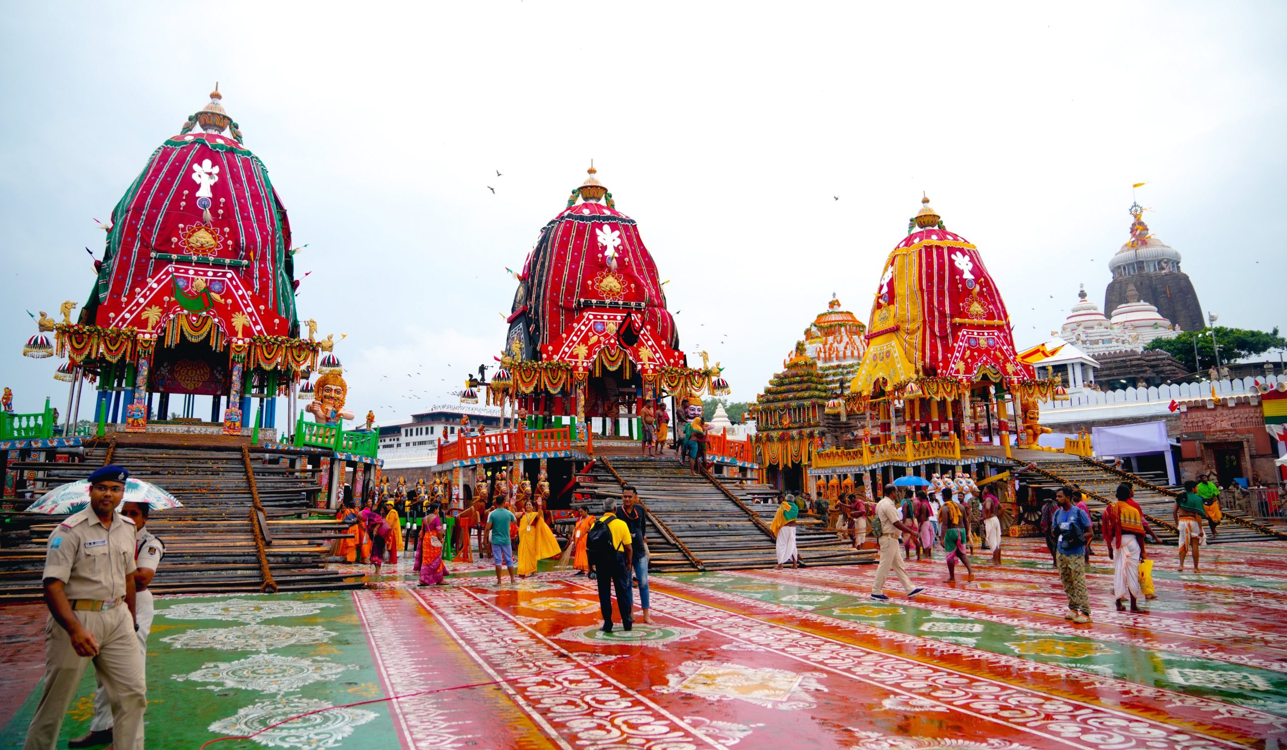 ଘୋଷଯାତ୍ରାର ଅବ୍ୟବହିତ ପୂର୍ବରୁ ଗୁରୁବାର ପ୍ରତିପଦା ତିଥିରେ ଶ୍ରୀମନ୍ଦିରରେ ସକାଳଧୂପ ଶେଷ ହେବା ପରେ ରଥଖଳାକୁ ଆଜ୍ଞାମାଳ ବିଜେ କରାଯାଇଥିଲା। ୩ଜଣ ପୂଜାପଣ୍ଡା ସେବକ ଶ୍ରୀବିଗ୍ରହଙ୍କଠାରୁ ଆଜ୍ଞାମାଳ ଆଣିଥିଲେ। ପରେ ଘଣ୍ଟ, ଛତା କାହାଳୀ ଆଦି ସହ ପୂଜାପଣ୍ଡା ସାମନ୍ତ ରଥଖଳାକୁ ଆଜ୍ଞାମାଳ ବିଜେ କରିଥିଲେ। ପ୍ରଥମେ ବଡ଼ଠାକୁର ବଳଭଦ୍ରଙ୍କ ତାଳଧ୍ୱଜ, ପରେ ଶ୍ରୀଜଗନ୍ନାଥଙ୍କ ନନ୍ଦିଘୋଷ ଏବଂ ଶେଷରେ ଦେବୀ ସୁଭଦ୍ରାଙ୍କ ଦେବଦଳନ ରଥରେ ଆଜ୍ଞାମାଳ ବିଜେ କରାଯାଇଥିଲା। ଭୋଇ ସେବକମାନେ ରଥରେ ଦଉଡ଼ି ସଂଯୋଗ କରିଥିଲେ। ତାଳଧ୍ୱଜ ରଥରେ ବିଜେ କାହାଳୀ ଦିଆଯିବା ପରେ ପରମ୍ପରା ଅନୁଯାୟୀ, ପ୍ରଥମେ ନନ୍ଦିଘୋଷ ରଥକୁ ଶ୍ରୀମନ୍ଦିର ସିଂହଦ୍ବାର ସମ୍ମୁଖକୁ ଟଣାଯାଇଥିଲା। ପରେ ଦେବଦଳନ ଏବଂ ଶେଷରେ ତାଳଧ୍ୱଜ ରଥକୁ ଟଣାଯାଇ ଶ୍ରୀମନ୍ଦିର ସିଂହଦ୍ୱାର ସମ୍ମୁଖରେ ପହଞ୍ଚାଯାଇଥିଲା। ସିଂହଦ୍ୱାର ସମ୍ମୁଖରେ ଲାଗିବା ପରେ ତିନିରଥ ଚାରିପଟେ ପୋଲିସ ପକ୍ଷରୁ ଲୁହା ବ୍ୟାରିକେଡ୍ ଦ୍ବାରା ଆବଦ୍ଧ କରାଯାଇଥିଲା। ରଥଯାତ୍ରା ପାଇଁ ପୁରୀ ପ୍ରଶାସନ ଓ ରାଜ୍ୟ ସରକାରଙ୍କ ପକ୍ଷରୁ ସମସ୍ତ ପ୍ରସ୍ତୁତି ସରିଛି।