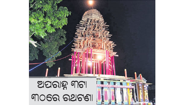 ପୁରୁଣା ଭୁବନେଶ୍ୱର,୯ା୪(ଡି.ଏନ୍.ଏ.): ପ୍ରଭୁ ଶ୍ରୀଲିଙ୍ଗରାଜଙ୍କ ରୁକୁଣା ରଥଯାତ୍ରା ଶନିବାର ଅନୁଷ୍ଠିତ ହେବ। ରଥଖଳାରେ ରଥ ଓ ପଥ ପ୍ରସ୍ତୁତ। ମନ୍ଦିର ପ୍ରଶାସନ ପକ୍ଷରୁ ମଧ୍ୟ ସବୁ ପ୍ରସ୍ତୁତି ଶେଷ ହୋଇଛି। କରୋନା କଟକଣା ପାଇଁ ଗତ ଦୁଇ ବର୍ଷ ହେବ ଭକ୍ତ ରଥଟଣାରୁ ବଞ୍ଚିତ ଥିବା ବେଳେ ଚଳିତ ବର୍ଷ କଟକଣା ନ ଥିବାରୁ ଭକ୍ତଙ୍କ ମହଲରେ ଉତ୍ସାହ ଦେଖାଦେଇଛି। ଶୁକ୍ରବାର ରଥଖଳାରେ ଥିବା ରୁକୁଣା ରଥ ପ୍ରତିଷ୍ଠା କାର୍ଯ୍ୟ ସମ୍ପନ୍ନ ହୋଇଛି। ଏନେଇ ଦୈନିକ ନୀତି ସନ୍ଧ୍ୟାଧୂପ ସରିବା ପରେ ପତ୍ରି ଘଣ୍ଟ, କାହାଳି, ଚର୍ଚ୍ଚେଇତ, ମନ୍ଦିର ସୁପରଭାଇଜର, ମଶାଲ ସହ ମୁକ୍ତେଶ୍ୱର ମନ୍ଦିରକୁ ଯାତ୍ରା କରିଥିଲେ। ମନ୍ଦିର ପରିସରରେ ଥିବା ମରୀଚି କୁଣ୍ଡରୁ ପତ୍ରି ସେବକ ୨ ମାଠିଆ ପାଣି ରଥ ପ୍ରତିଷ୍ଠା ପାଇଁ ଆଣିଥିଲେ। ଉକ୍ତ ପାଣିକୁ ପ୍ରତିଷ୍ଠା ମଣ୍ଡପରେ ରଖାଯାଇଥିଲା। ପରେ ମନ୍ଦିର ପୁରୋହିତ ମନୋରଞ୍ଜନ ଦାଶ, ପୁରୀ ରାଜଗୁରୁ ପ୍ରଭାତ କୁମାର ରାଜଗୁରୁ କର୍ତ୍ତା ଭାବେ ରଥ ପ୍ରତିଷ୍ଠା କାର୍ଯ୍ୟ ସମ୍ପାଦନ କରିଥିଲେ। ଏହାପରେ ସମର୍ଥା ସେବକ ରଥ ଉପରେ ଚଢ଼ି ନୂତନ ରଥ ଘେର ଓ ପତାକା ଲଗାଇଥିଲେ। ମନ୍ଦିରର ଉକ୍ତ ଦିନର ପାଳିଆ ପୂଜାପଣ୍ଡା ପଞ୍ଚବକ୍ରଙ୍କୁ ଧରି ରଥରେ ଥିବା ସିଂହାସନ ପଛପଟୁ ବିଜେ କରିଥିଲେ। ପତ୍ରି ସେବକ ଠା’ କରିସାରିବା ପରେ ପଞ୍ଚ ଉପଚାରରେ ଭୋଗ ନୈବେଦ୍ୟ ସହ ଆଳତି କରାଯାଇଥିଲା। ବିଳମ୍ବିତ ରାତିରେ ବଡ଼ସିଂହାର ବେଶ କରାଯାଇ ମନ୍ଦିର ପହଡ଼ ପଡ଼ିଥିଲା। ବିଳମ୍ବିତ ରାତିରେ ରଥ ପ୍ରତିଷ୍ଠା କାର୍ଯ୍ୟ ସମ୍ପନ୍ନ ହୋଇଛି। ତେବେ ରଥ ଗଡ଼ିବା ନେଇ ରଥଖଳାରୁ ରାମେଶ୍ୱର ମନ୍ଦିର ପର୍ଯ୍ୟନ୍ତ ପିଚୁ କରାଯାଇଛି। ଶନିବାର ପୂଜା ସମ୍ପନ୍ନ ପରେ ଅପରାହ୍ନ ୩ଟା ୩୦ରେ ରଥରଣା ହେବା ନେଇ ସ୍ଥିର ହୋଇଛି। ରଥଯାତ୍ରା ଓ ବାହୁଡ଼ା ଯାତ୍ରା ପାଇଁ କମିଶନରେଟ ପୋଲିସ ପକ୍ଷରୁ ୨୦ପ୍ଲାଟନ ପୋଲିସ ଫୋର୍ସ ନିୟୋଜିତ କରାଯାଇଛି।