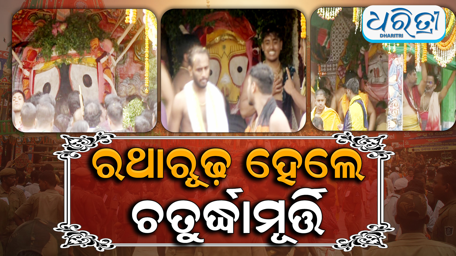 ପୁରୀ,୨୭।୬: ଆଷାଢ଼ ଶୁକ୍ଳ ଦ୍ୱିତୀୟା ତିଥି ଶୁକ୍ରବାର ମହାପ୍ରଭୁଙ୍କ ବିଶ୍ବପ୍ରସିଦ୍ଧ ଘୋଷଯାତ୍ରା। ଦାରୁଦିଅଁ ଶ୍ରୀମନ୍ଦିରରୁ ବଡ଼ଦାଣ୍ଡକୁ ଓହ୍ଲାଇଆସି ଭକ୍ତଙ୍କୁ ଦର୍ଶନ ଦେଉଛନ୍ତି। ଜଗା ପାଇଁ ଜନସମୁଦ୍ର ହୋଇଛି ବଡ଼ଦାଣ୍ଡ। କାଳିଆ ପ୍ରେମରେ ଭିଜୁଛନ୍ତି ଭକ୍ତ । କାଳିଆର ଗୁଣ୍ଡିଚା ଯାତ ଦେଖିବାକୁ କାହିଁ କେତେ ଦୂରରୁ ଧାଇଁ ଆସିଛନ୍ତି ଭକ୍ତ ।