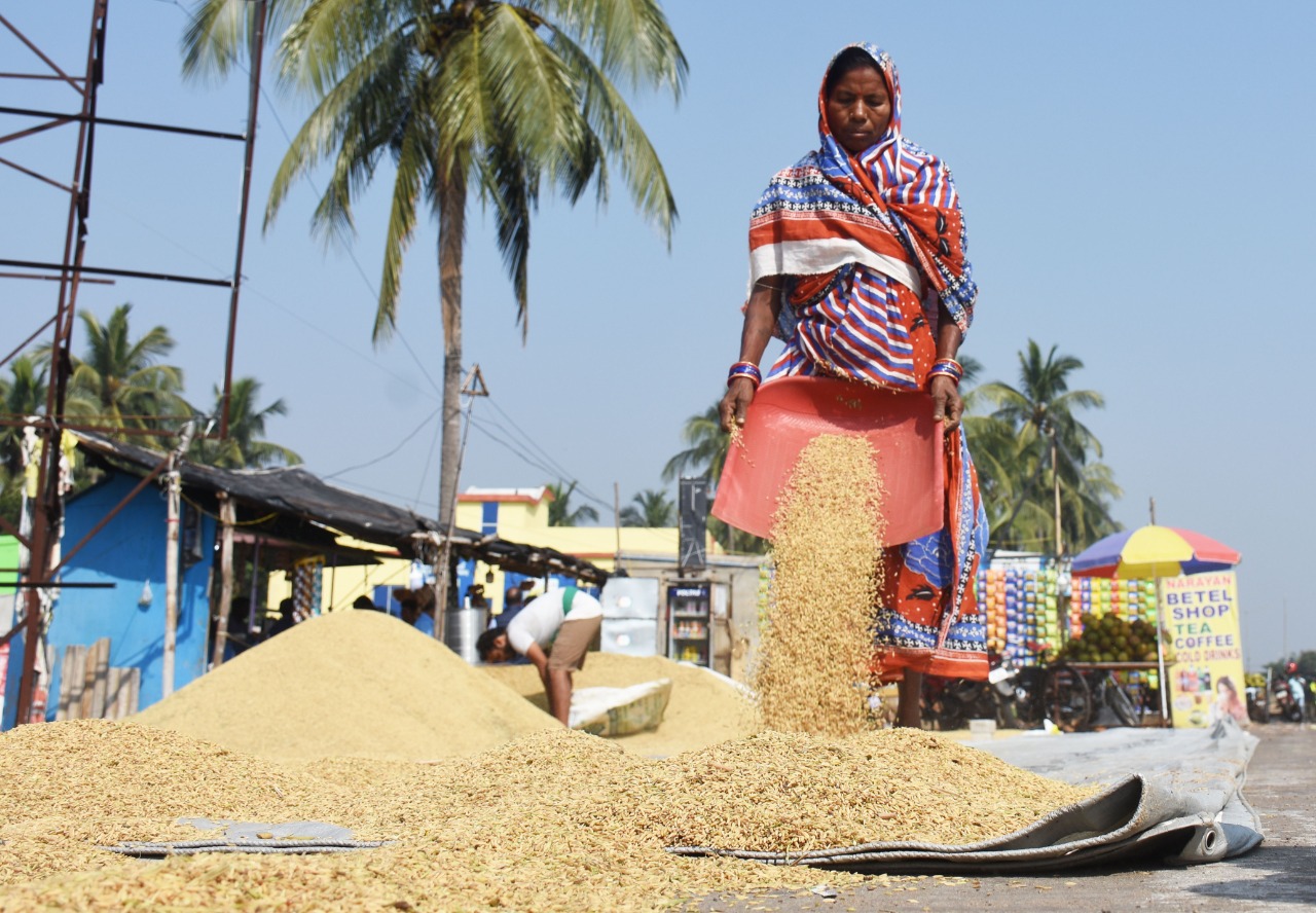 ପୁରୀ ଟୋଲଗେଟ୍ ରୋଡ୍ରେ ଧାନକୁ ଖରାରେ ଶୁଖାଉଛନ୍ତି ମହିଳା