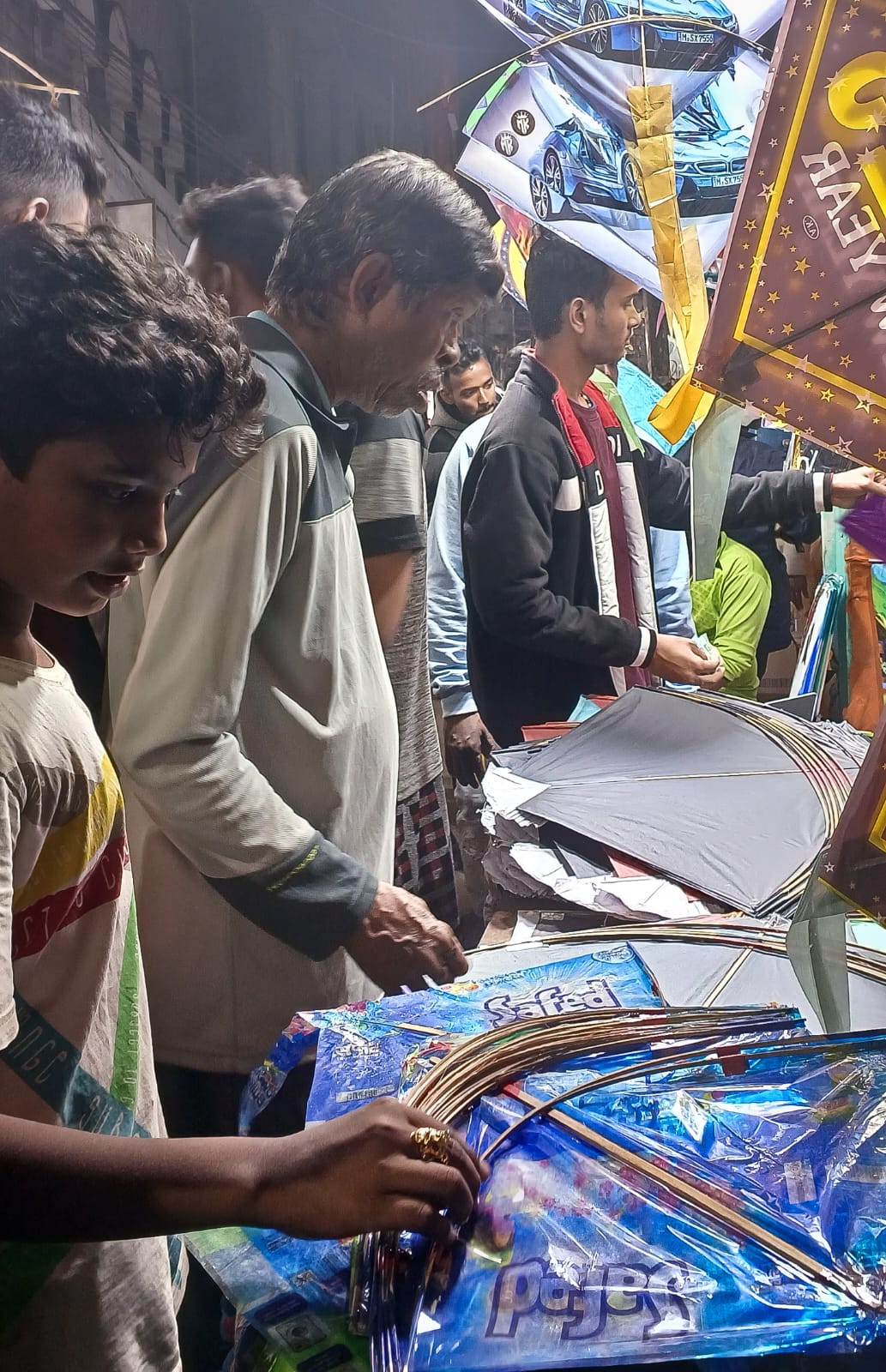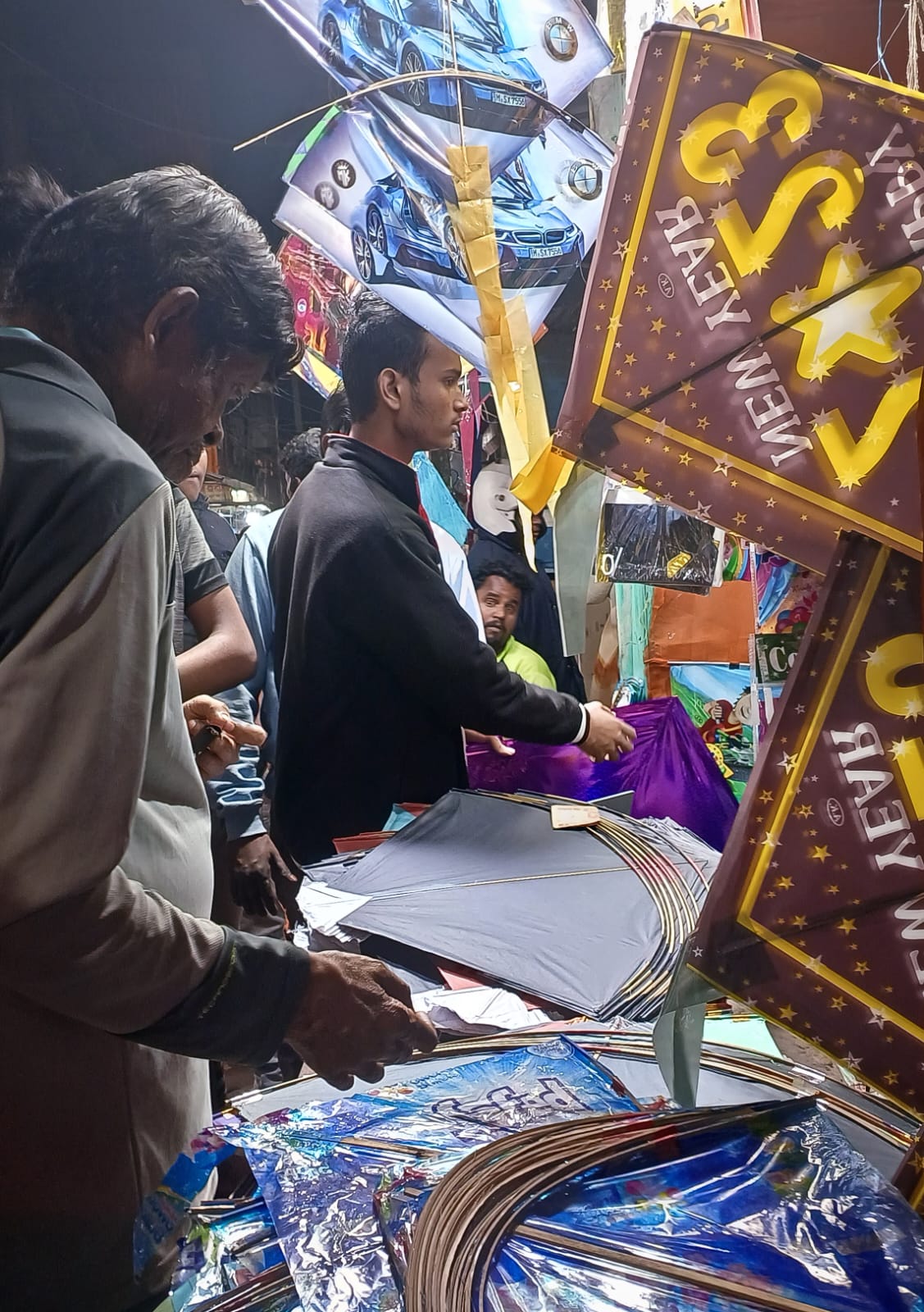 ମକର ସଂକ୍ରାନ୍ତି ଉପଲକ୍ଷେ ଗୁଡ଼ି କିଣିବା ପାଇଁ ଚୌଧୁରୀ ବଜାର ଅଂଚଳରେ ଥିବା ଏକ ଗୁଡ଼ି ଦୋକାନରେ ଲୋକଙ୍କ ଭିଡ