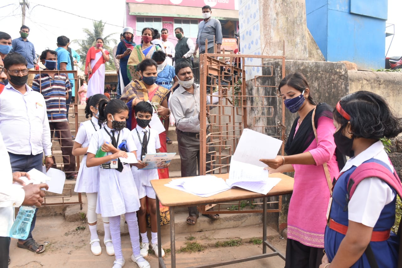 ଭୁବନେଶ୍ୱର ହଂସପାଳ ସରକାରୀ ଉଚ୍ଚ ପ୍ରାଥମିକ ବିଦ୍ୟାଳୟରେ ସ୍କଲାରଶିପ ପରୀକ୍ଷା ପାଇଁ ପିଲାମାନେ ଯାଉଛନ୍ତି
