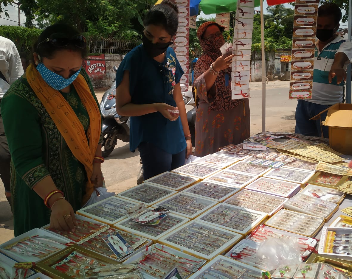 କଟକ କଲେଜ ଛକରେ ରାଖୀ କିଣୁଛନ୍ତି ମହିଳା