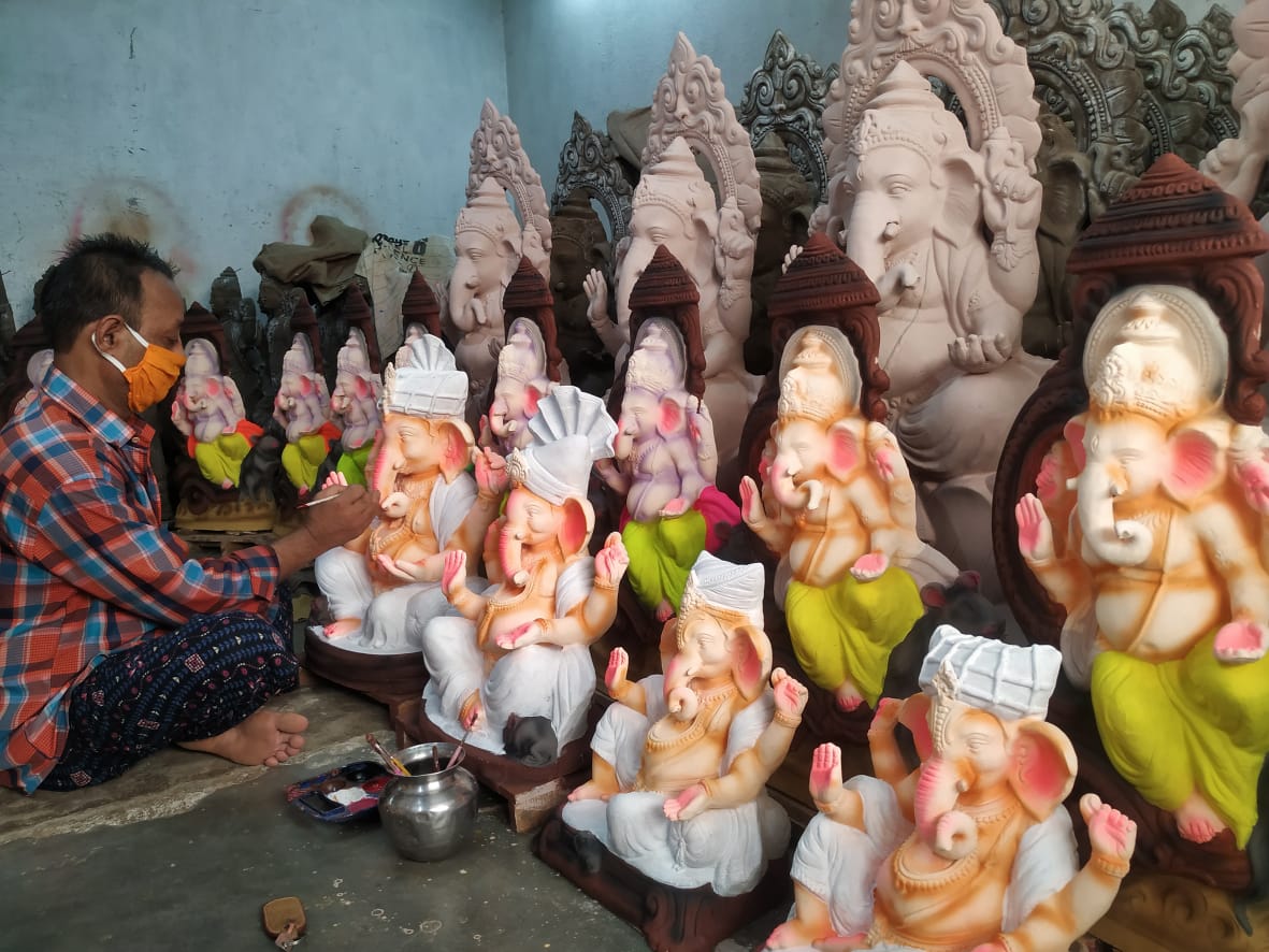 ଗଣେଶଙ୍କ ମୂର୍ତ୍ତିରେ ରଙ୍ଗ ଦେଉଛନ୍ତି କଟକ କୁମ୍ଭାରସାହିରେ ଜଣେ ଶିଳ୍ପୀ