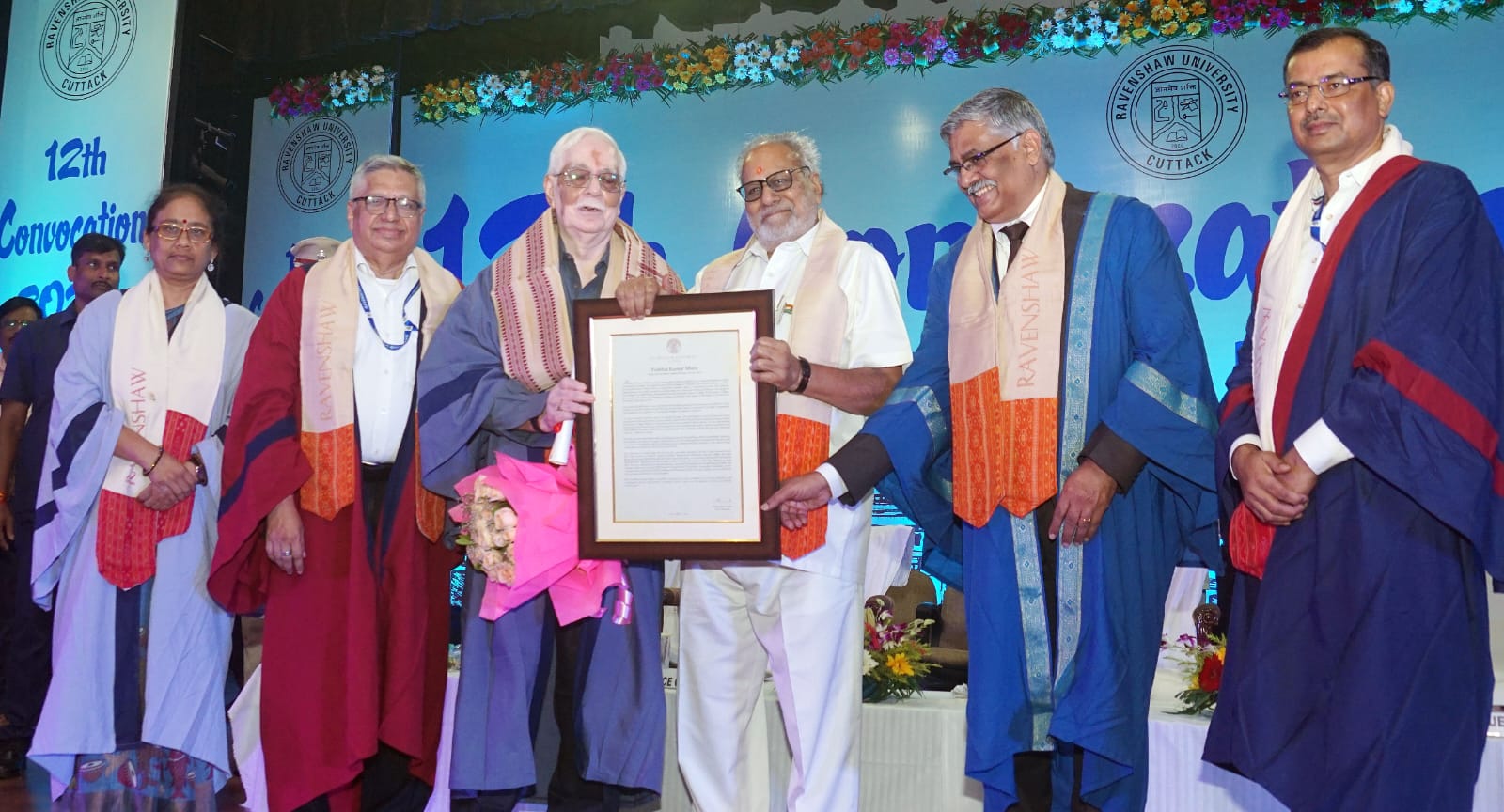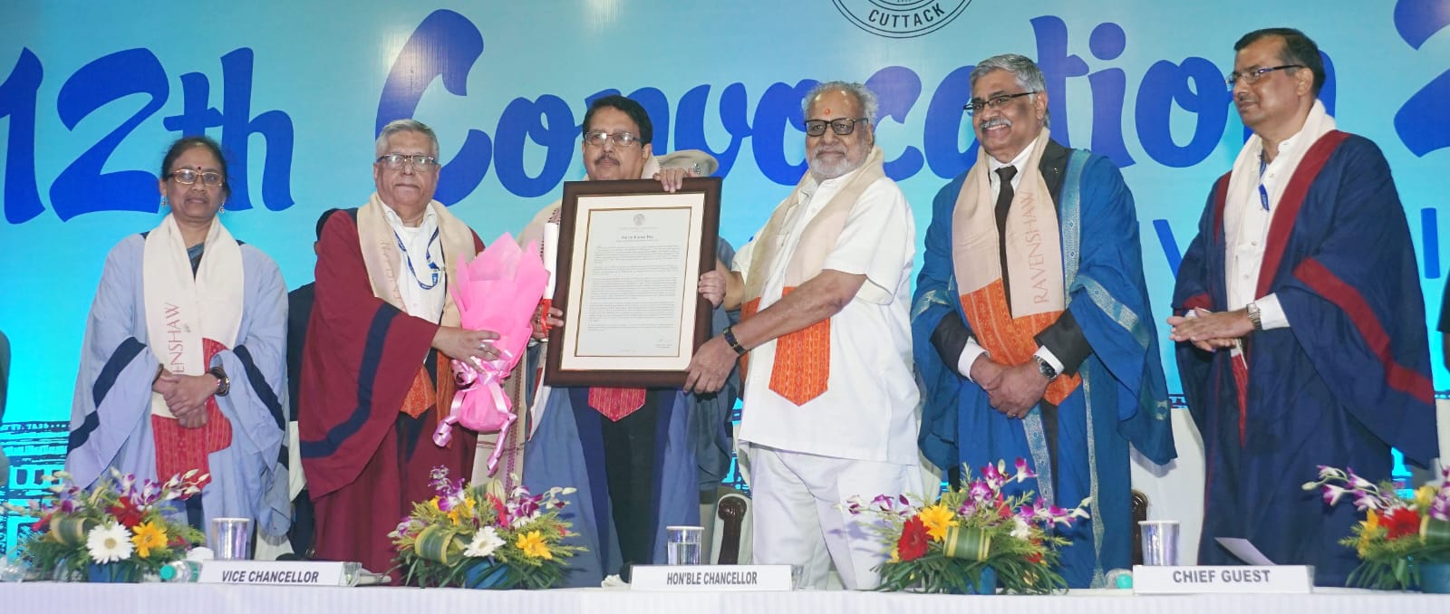 ରେଭେନଶା ବିଶ୍ୱବିଦ୍ୟାଳୟର ଦ୍ୱାଦଶ ସମାବର୍ତ୍ତନ ଉତ୍ସବରେ ପ୍ରଣବ କିଶୋର ପଟ୍ଟନାୟକଙ୍କୁ Doctor of Literature ଉପାଧି ପ୍ରଦାନ କରୁଛନ୍ତି ରାଜ୍ୟପାଳ ପ୍ରଫେସର ଗଣେଶି ଲାଲ