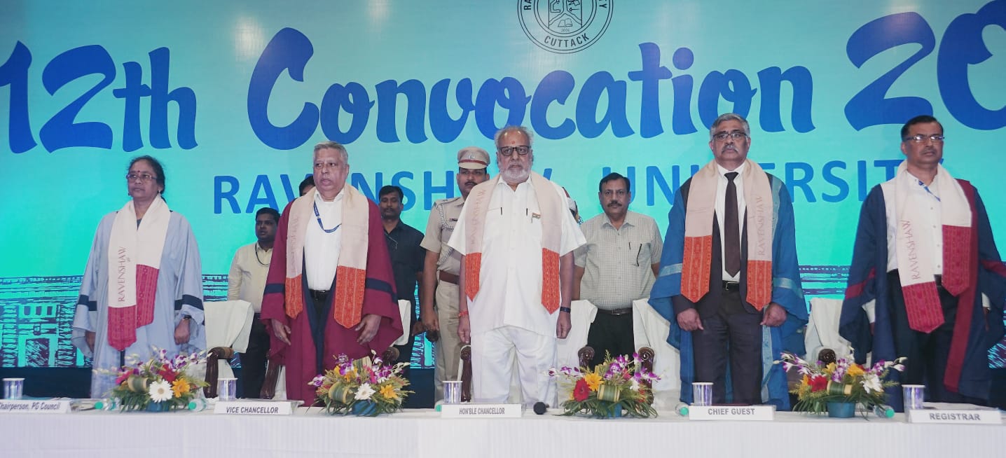 କଟକ ସ୍ଥିତ ରେଭେନଶା ବିଶ୍ୱବିଦ୍ୟାଳୟର Seven Pillers of Wisdom ସଭାଗୃହରେ ୧୨ଦଶ ସମାବର୍ତ୍ତନ ଉତ୍ସବରେ ରାଜ୍ୟପାଳ ପ୍ରଫେସର ଗଣେଶି ଲାଲ ଓ ଅନ୍ୟାନ୍ୟ ଅତିଥିମାନେ ଯୋଗ ଦେଇଛନ୍ତି