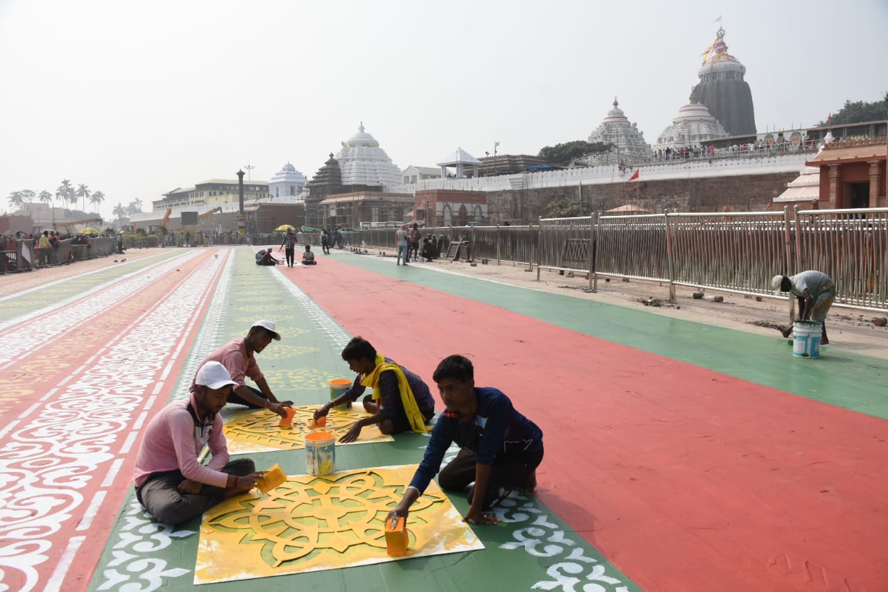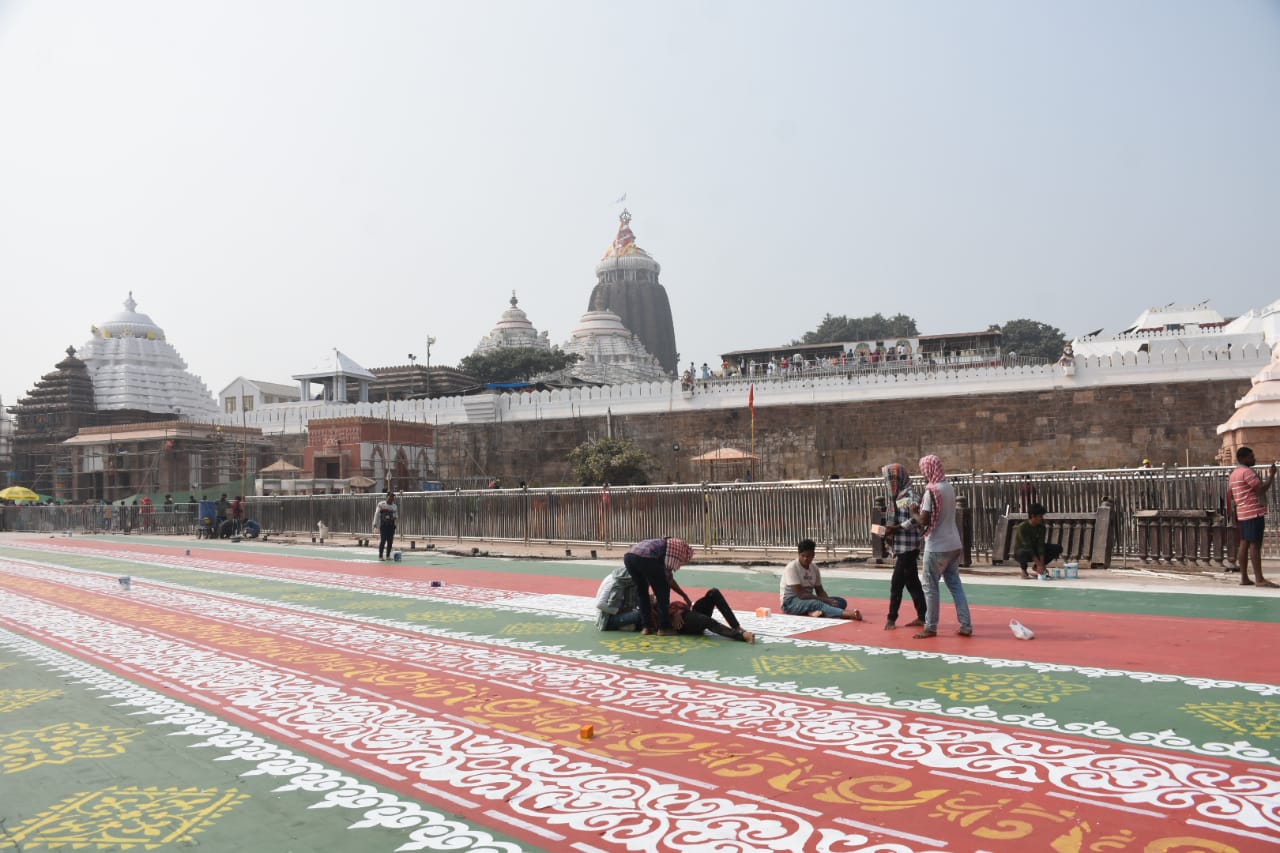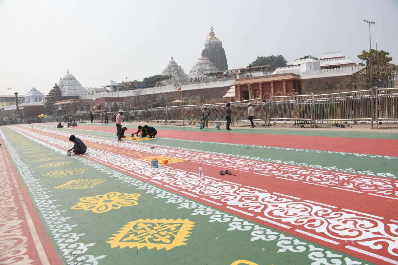 ଶ୍ରୀମନ୍ଦିର ପରିକ୍ରମା ପ୍ରକଳ୍ପ ପାଇଁ ଚିତ୍ରକଳାରେ ସଜେଇ ହେଉଛି ପୁରୀ ପୁରୀ ଶ୍ରୀମନ୍ଦିର ସିଂହ ଦ୍ୱାରରେ ପ୍ରଭୁ ପତିତପାବନଙ୍କୁ ଆଳତି କରାଯାଉଛି ପୁରୀ ଶ୍ରୀମନ୍ଦିର ସମ୍ମୁଖରେ ପାରମ୍ପରିକ ଝୋଟିଚିତାରେ ସୁସଜ୍ଜିତ କରାଯାଉଛି