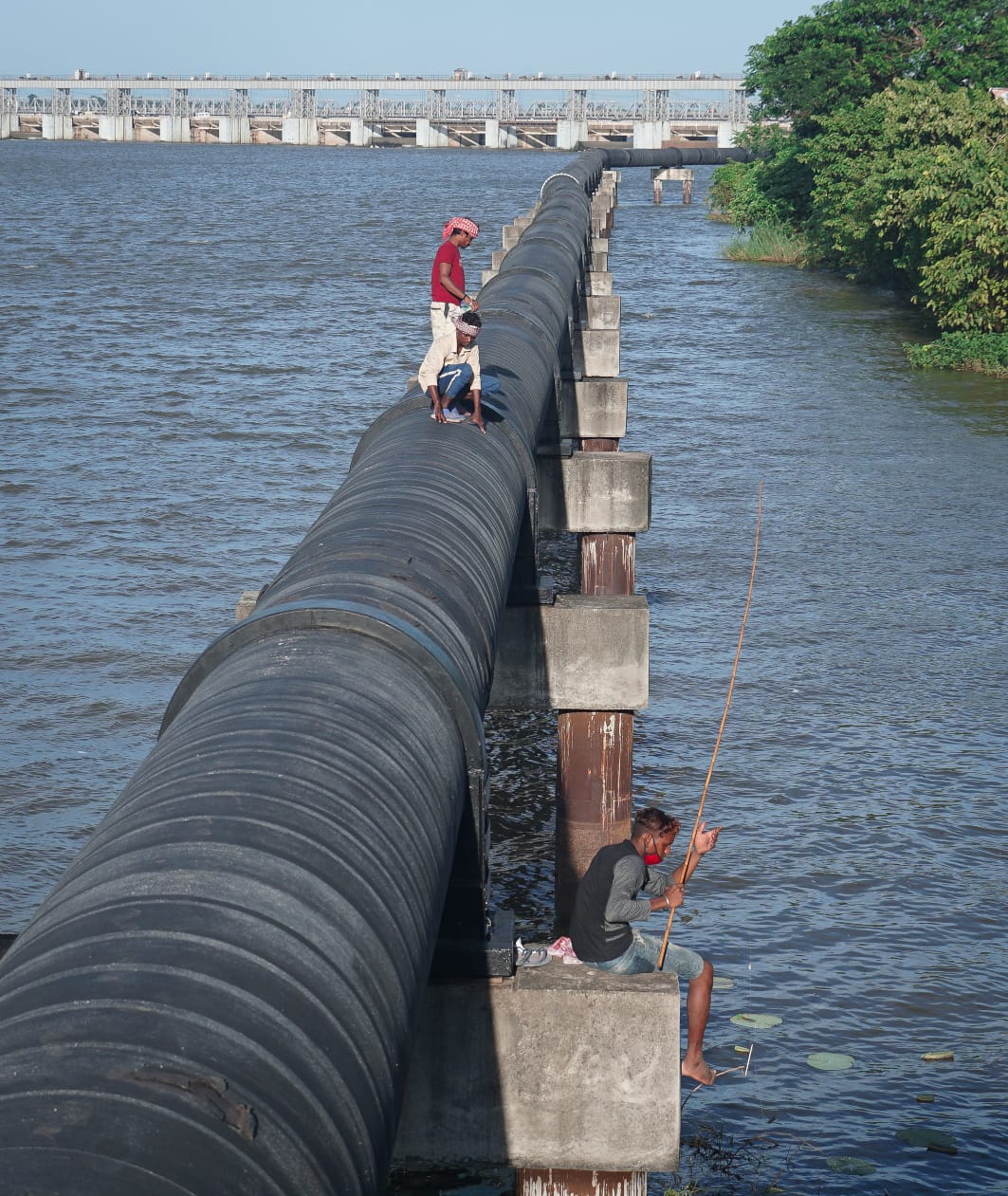 ସୋମବାର କଟକସ୍ଥିତ ଜୋବ୍ରା ଆନିକଟରେ ଠାରେ ଯୁବକମାନେ ବଂଚି ପକାଇ ମାଛ ଧରୁଛନ୍ତି