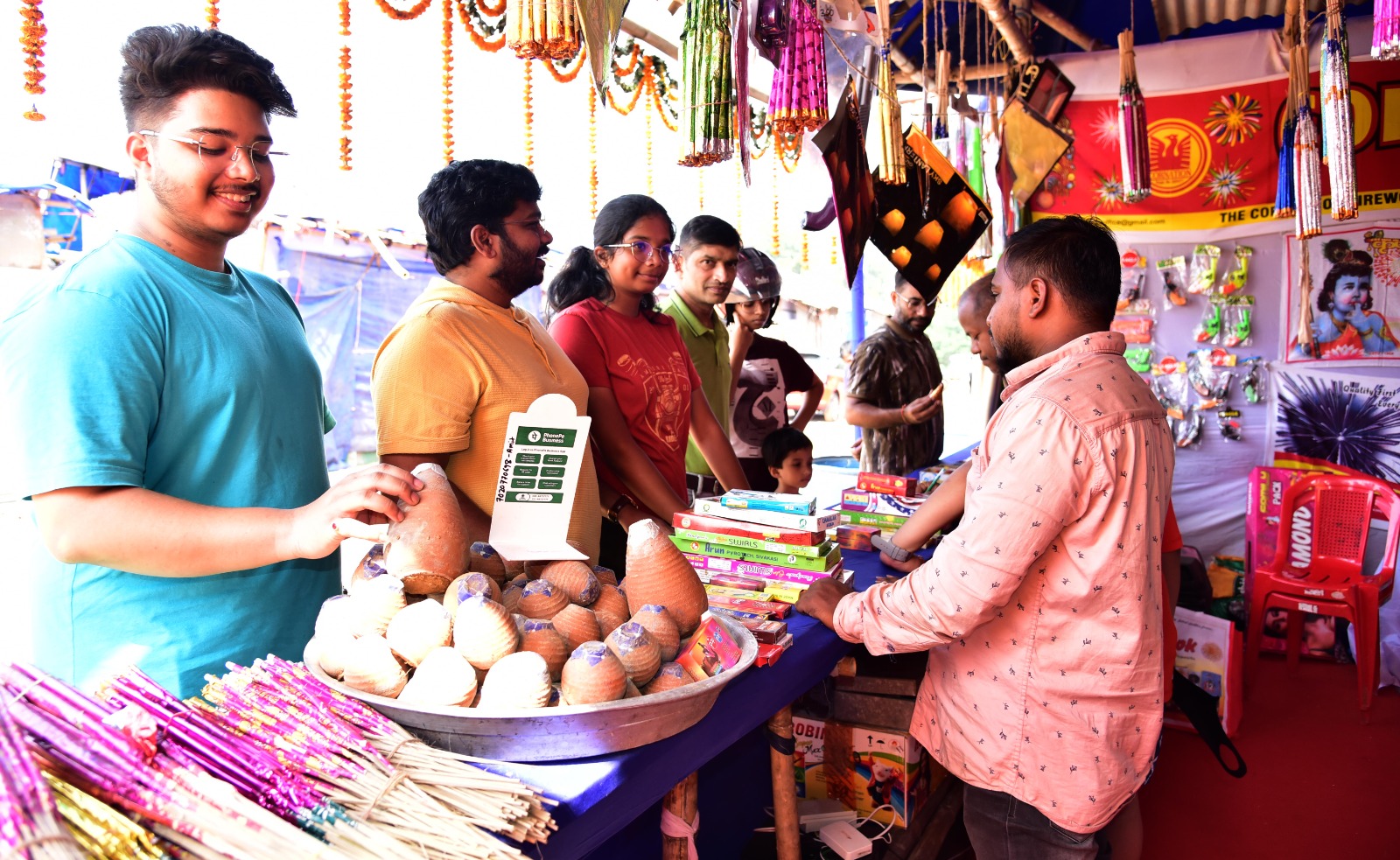 ଭୁବନେଶ୍ୱର ବରମୁଣ୍ଡା ଖେଳପଡିଆରେ ଥିବା ଅସ୍ଥାୟୀ ବାଣ ଦୋକାନରୁ ବାଣ କିଣୁଛନ୍ତି ଗ୍ରାହକ