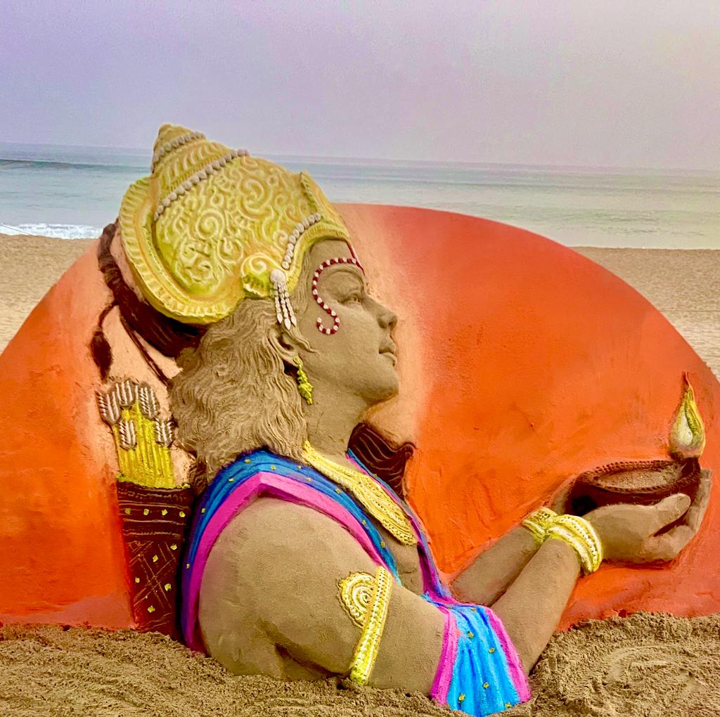 ପୁରୀ ବେଳାଭୂମିରେ ସୁଦର୍ଶନ ପଟ୍ଟନାୟକଙ୍କ ଦ୍ୱାରା ବାଲୁକା କଳାରେ ନିର୍ମିତ ଦୀପାବଳୀ ଶୁଭେଚ୍ଛା ବାର୍ତ୍ତା