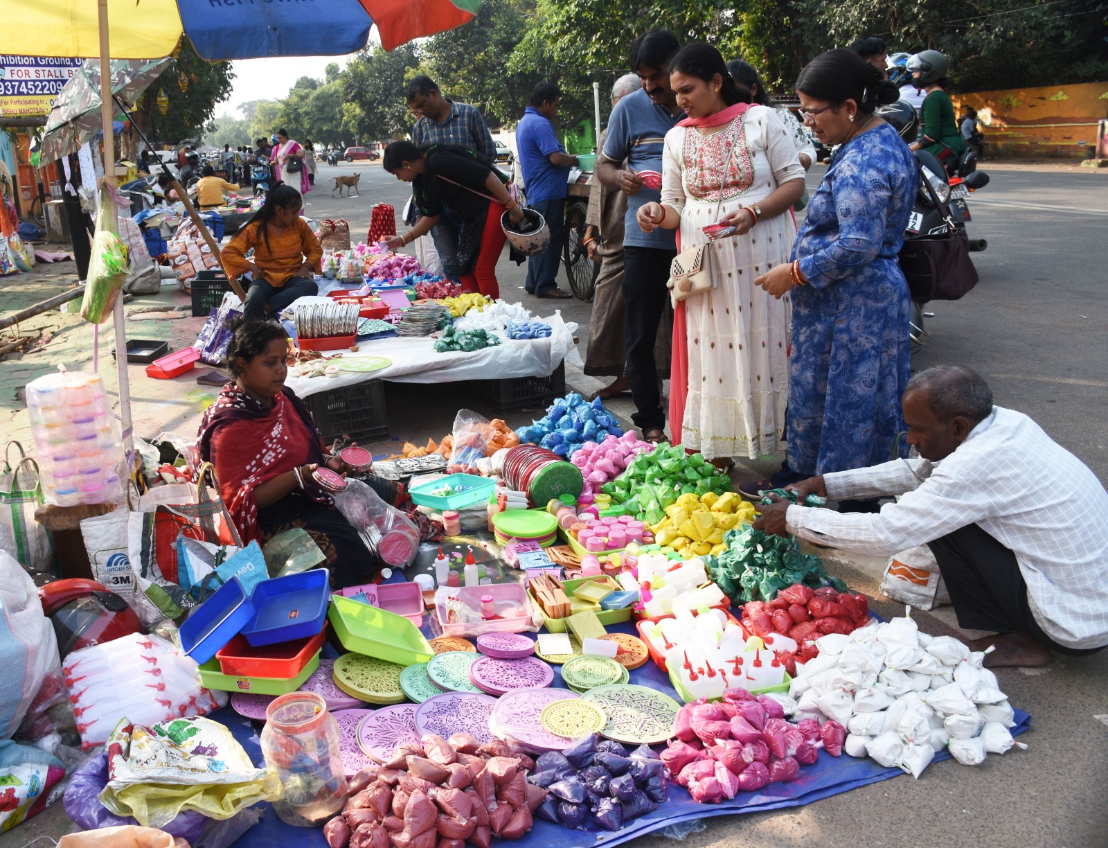 ଦୀପାବଳି ପାଇଁ ଭୁବନେଶ୍ୱର ୟୁନିଟ-୩ ପ୍ରଦର୍ଶନୀ ପଡିଆ ସମ୍ମୁଖରେ ରଙ୍ଗୋଲି କିଣିବା ପାଇଁ ଗ୍ରାହକଙ୍କ ଭିଡ଼