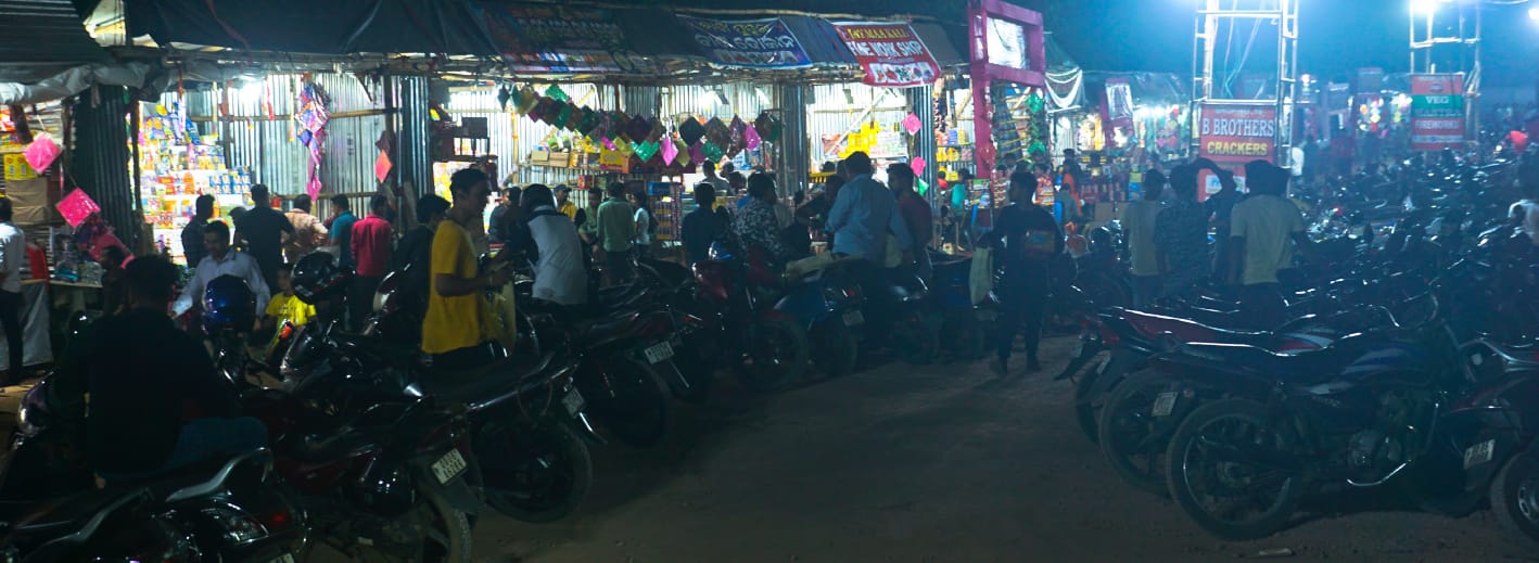 ଭୁବନେଶ୍ୱର ବରମୁଣ୍ଡା ଖେଳପଡିଆରେ ଥିବା ଅସ୍ଥାୟୀ ବାଣ ଦୋକାନରୁ ବାଣ କିଣୁଛନ୍ତି ଗ୍ରାହକ