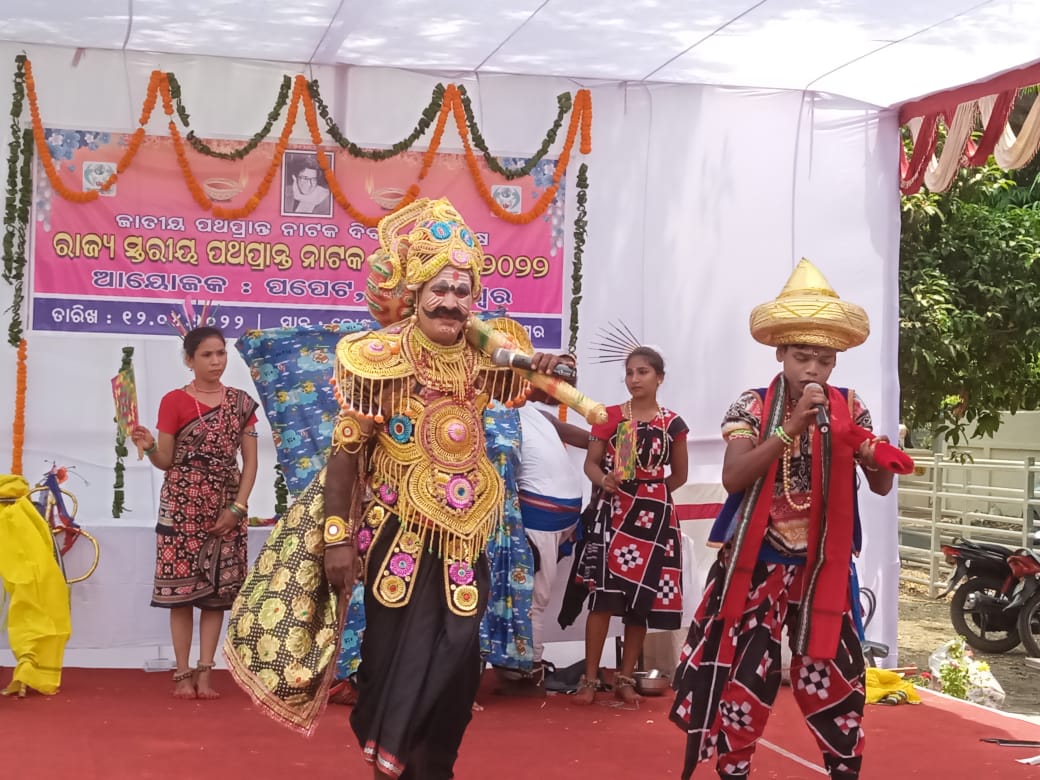 ଜାତୀୟ ପଥପ୍ରାନ୍ତ ନାଟକ ଦିବସ ଉପଲକ୍ଷେ ରାଜ୍ୟସ୍ତରୀୟ ପଥପ୍ରାନ୍ତ ନାଟକ ଉତ୍ସବ -୨୦୨୨ରେ ଭୁବନେଶ୍ୱର ପିଏମଜିରେ କଳାକାରମାନେ ପରିବେଷଣ କରୁଛନ୍ତି ନାଟକ