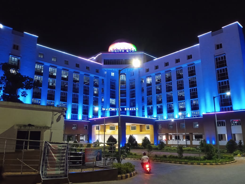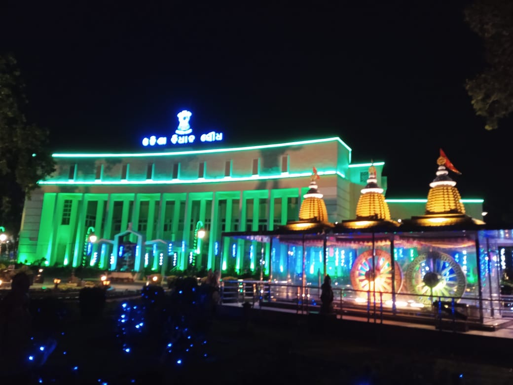 ରଙ୍ଗୀନ ଆଲୋକମାଳାରେ ଭୁବନେଶ୍ୱରସ୍ଥିତ ଖାରବେଳ ଭବନ