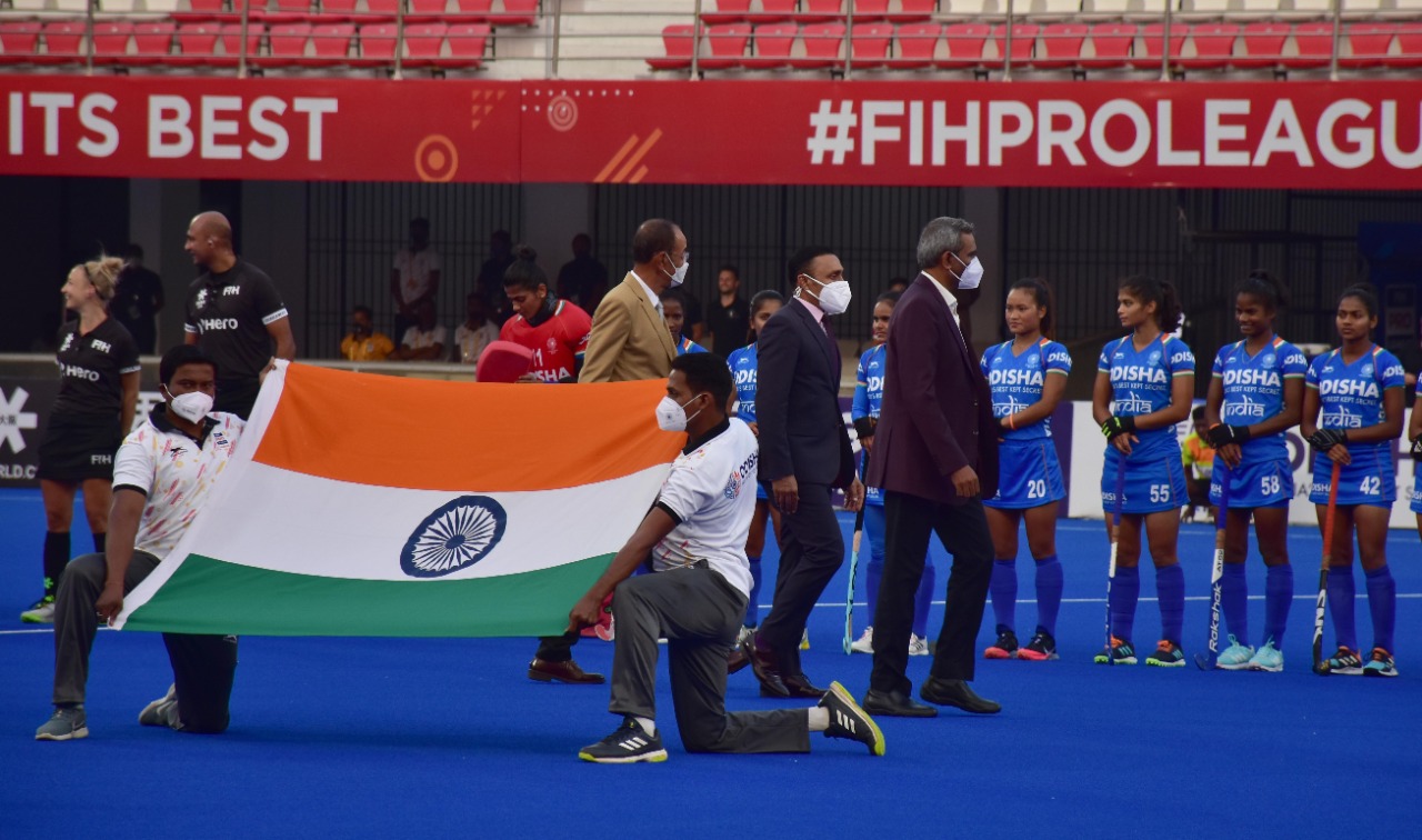 ଭୁବନେଶ୍ୱର କଳିଙ୍ଗ ଷ୍ଟାଡିଅମରେ ଏଫଆଇଏଚ ପ୍ରୋ ଲିଗ (ମହିଳା)ରେ ଭାରତ ଏବଂ ଜର୍ମାନୀ ମଧ୍ୟରେ ଅନୁଷ୍ଠିତ ମ୍ୟାଚ