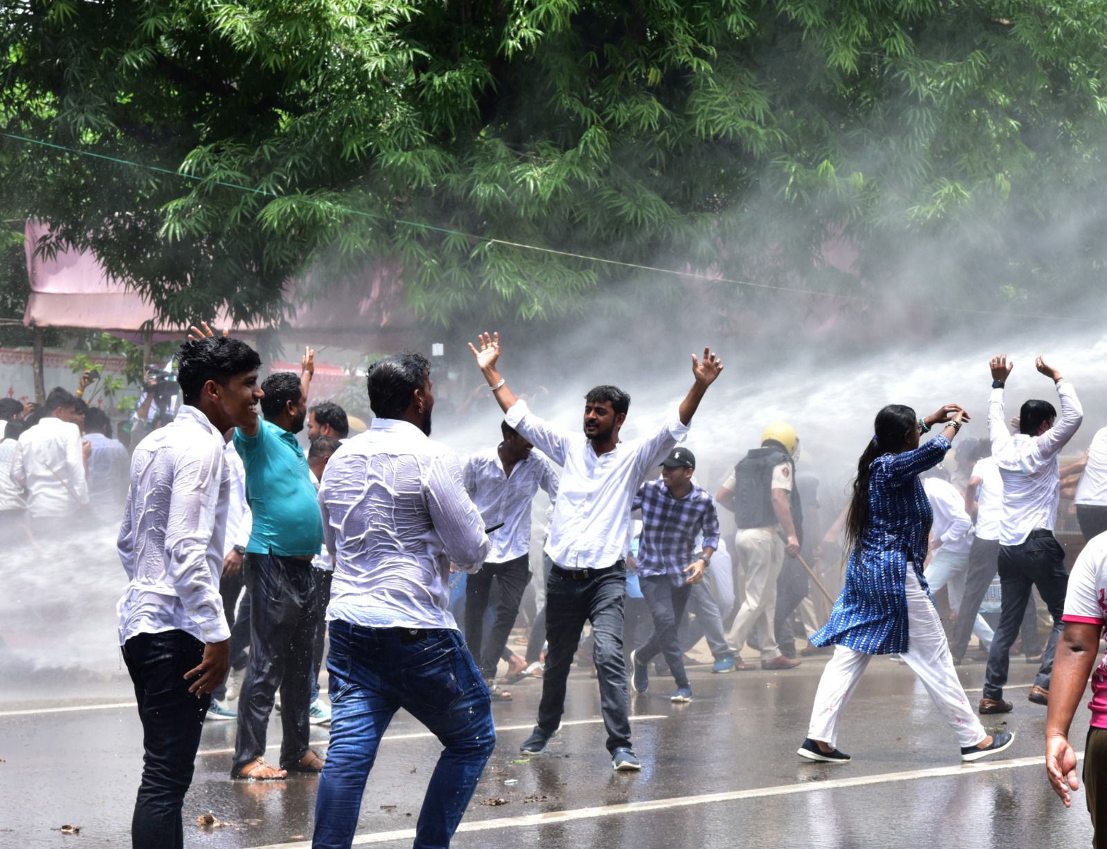 ଭୁବନେଶ୍ୱର ଲୋକସେବା ଭବନ ନିକଟରେ ପ୍ରତିବାଦ କରୁଥିବା ବିଜେଡି କର୍ମୀଙ୍କ ଉପରେ ପୋଲିସର ପାଣି ପ୍ରୟୋଗ