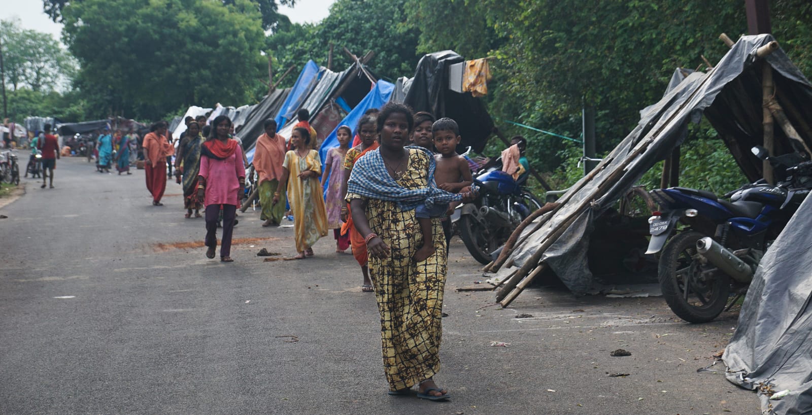 କଟକ ଧବଳେଶ୍ୱର ଗଡା ରିଂବନ୍ଧ ରାସ୍ତା ପାର୍ଶ୍ୱରେ ପଲିଥିନ ଟାଣି ଆଶ୍ରୟ ନେଇଥିବା ବନ୍ୟା ପ୍ରଭାବିତ
