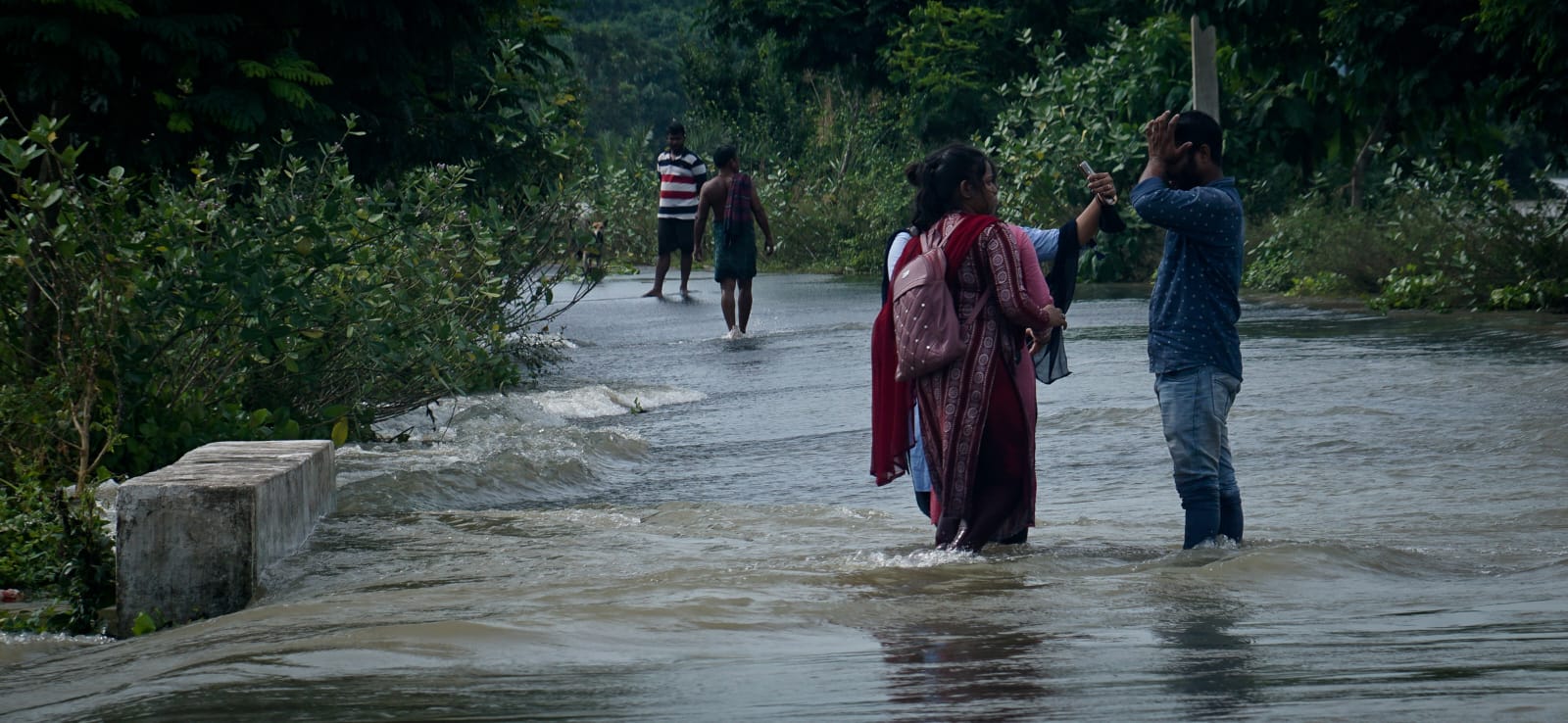କଟକ ନୂଆପାଟଣାରୁ ଧବଳେଶ୍ୱର ଶୈବପୀଠକୁ ସଂଯୋଗ କରୁଥିବା ରାସ୍ତାରେ ଚାଲୁଥିବା ବନ୍ୟାଜଳରେ ସେଲ୍ଫି ନେଉଛନ୍ତି ଯୁବତୀଯୁବକ