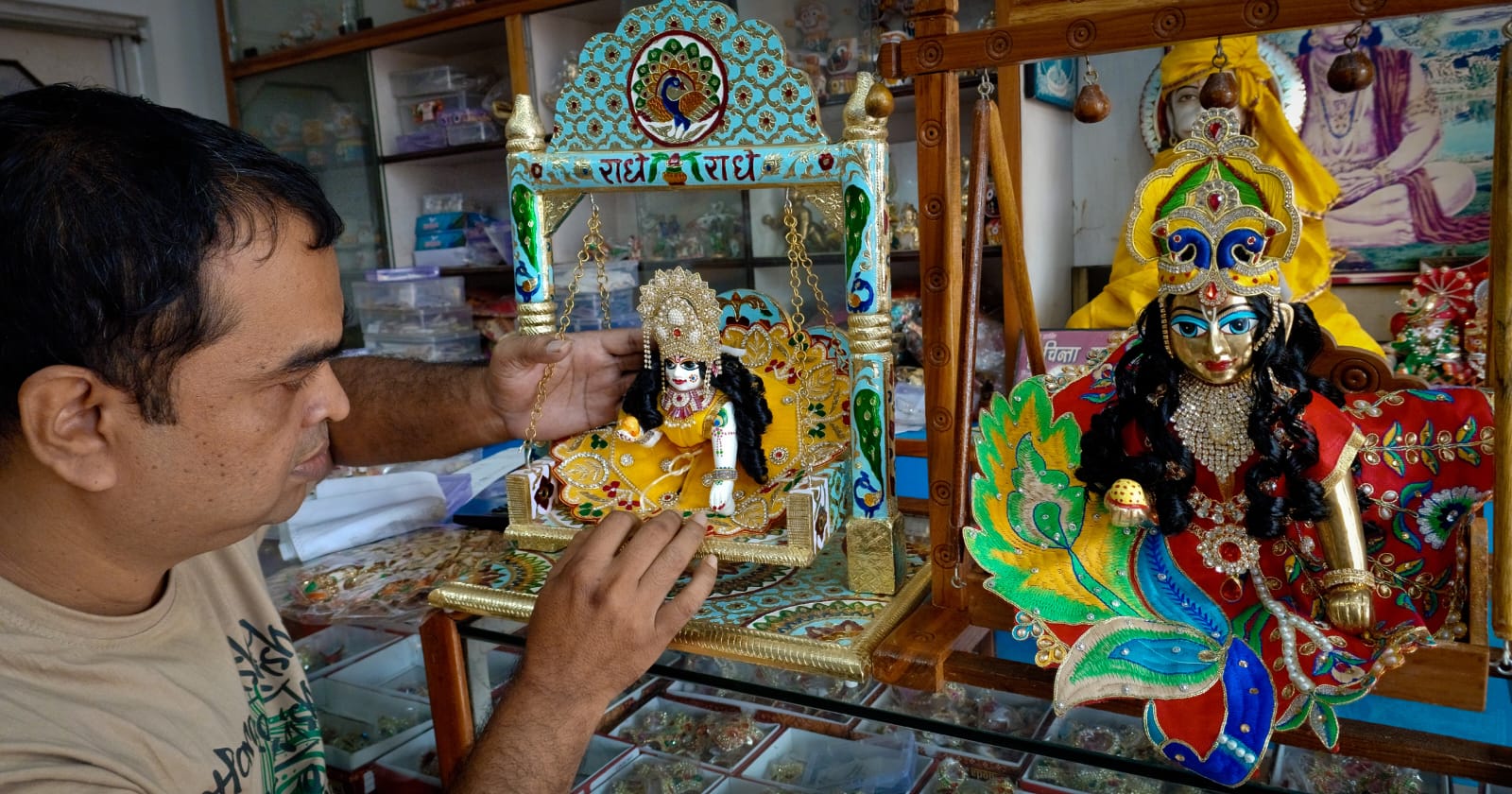 ଜନ୍ମାଷ୍ଟମୀ ଅବସରରେ ବଜ୍ରକବାଟି କେନାଲ ରୋଡ ସ୍ଥିତ ଦୋକାନରେ ବିକ୍ରୟ ପାଇଁ ଶ୍ରୀକୃଷ୍ଣଙ୍କ ପ୍ରତିମା ଗୁଡ଼ିକୁ ସଜ୍ଜିତ କରି ରଖୁଛନ୍ତି ବ୍ୟବସାୟୀ