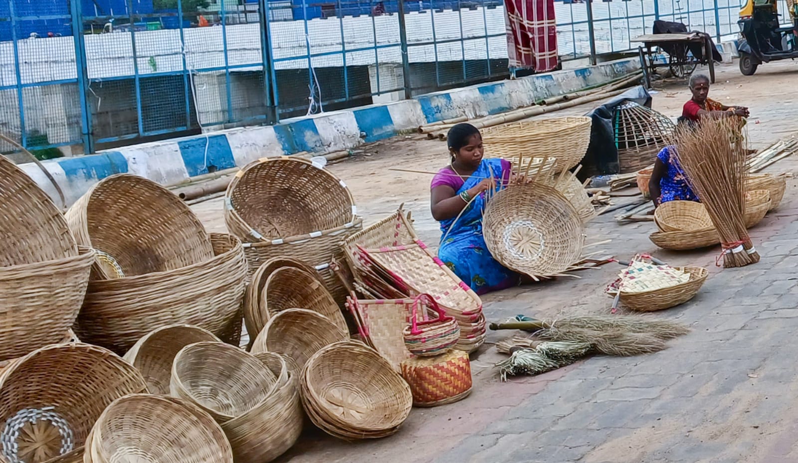 କଟକ ରାଣୀହାଟ କେନାଲ ରୋଡ ପାର୍ଶ୍ୱରେ ଜଣେ ମହିଳା ବାଉଁଶ ଜାତ ଗୃହ ସାମଗ୍ରୀ ପ୍ରସ୍ତୁତ କରୁଛନ୍ତି