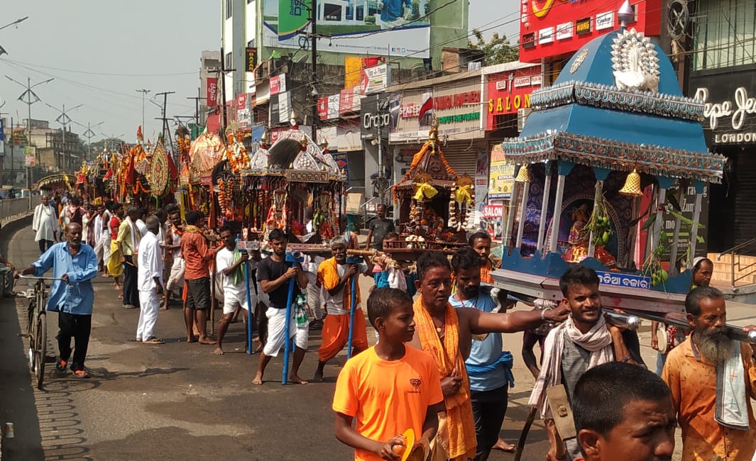 କଟକ ଦୋଳମୁଣ୍ଡାଇ ଚନ୍ଦନ ପଡିଆରୁ ଦୋଳପୂର୍ଣ୍ଣମୀ ଅବସରରେ ସହର ପରିକ୍ରମା ପାଇଁ ଶୋଭାଯାତ୍ରାରେ ଦୋଳ ବିମାନ