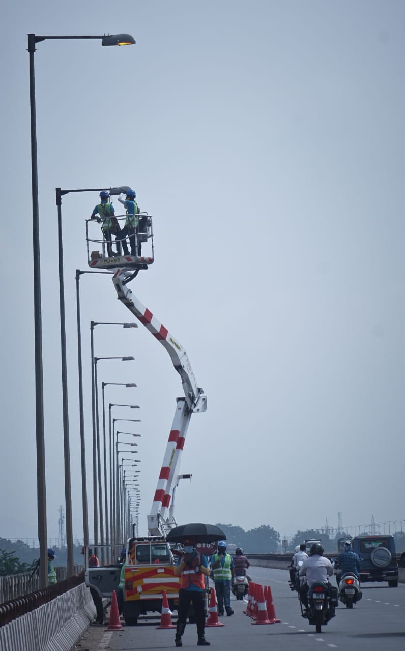 ମହାନଦୀ ବ୍ରିଜ ଉପରେ ଥିବା ଷ୍ଟ୍ରିଟଲାଇଟ ଗୁଡିକୁ ମରାମତି କରାଯାଉଛି