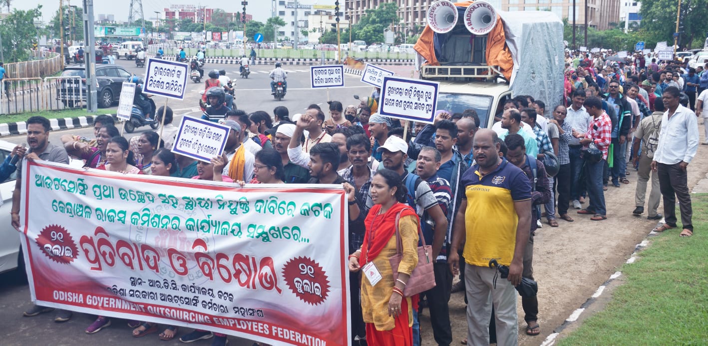 ଓଡିଶା ସରକାରୀ ଚୁକ୍ତିଭିତ୍ତିକ କର୍ମଚାରୀ ସଙ୍ଗଠନ ପକ୍ଷରୁ ବିଭିନ୍ନ ଦାବି ନେଇ କଟକ ସ୍ଥିତ ଜୁଡ଼ିସିଆଲ ଆକାଡେ଼ମୀ ନିକଟରୁ ଆରଡିସି(ସିଡି) ଅଫିସକୁ ବାହାରିଥିବା ବିକ୍ଷୋଭ ଶୋଭାଯାତ୍ରା