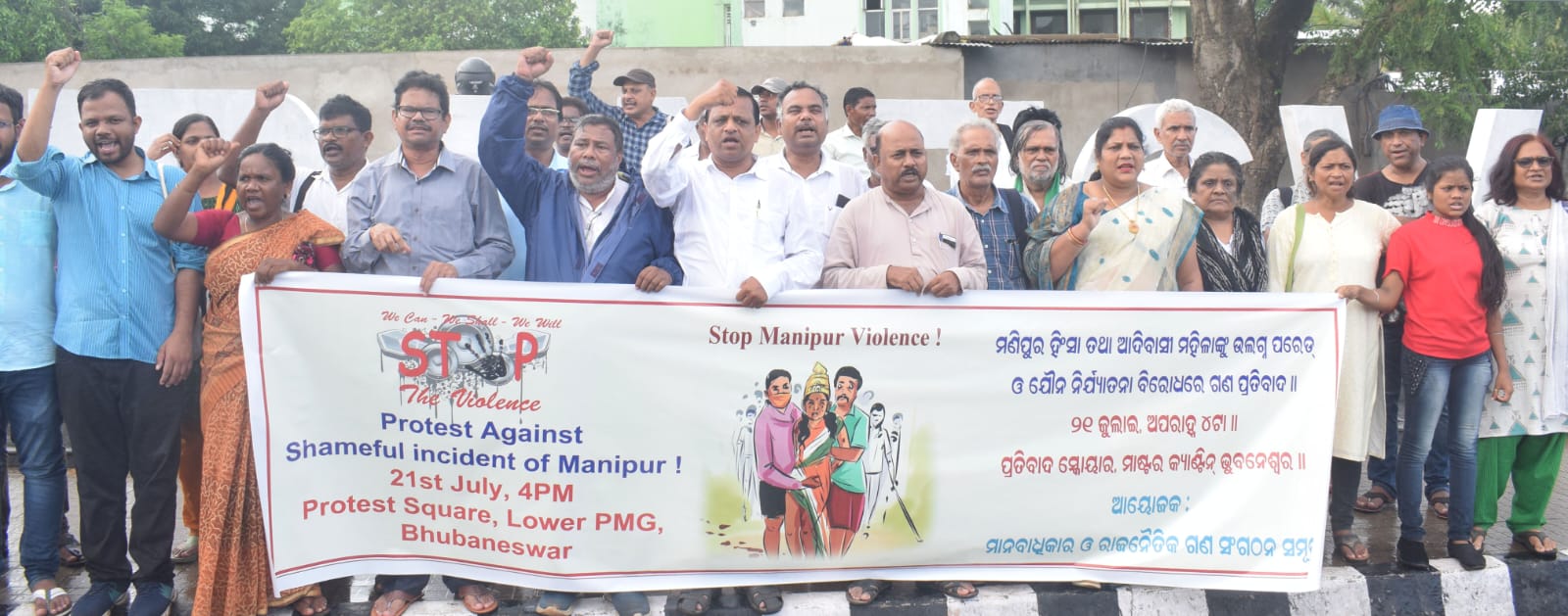 ମଣିପୁରରେ ଘଟିଥିବା ଲଜ୍ଜ୍ୟାଜନକ ଘଟଣା ପ୍ରତିବାଦରେ ବିଭିନ୍ନ ସଂଗଠନ ପକ୍ଷରୁ ଭୁବନେଶ୍ୱର ସ୍ଥିତ ଲୋୟର ପିଏମଜିରେ ବିକ୍ଷୋଭ ପ୍ରଦର୍ଶନ