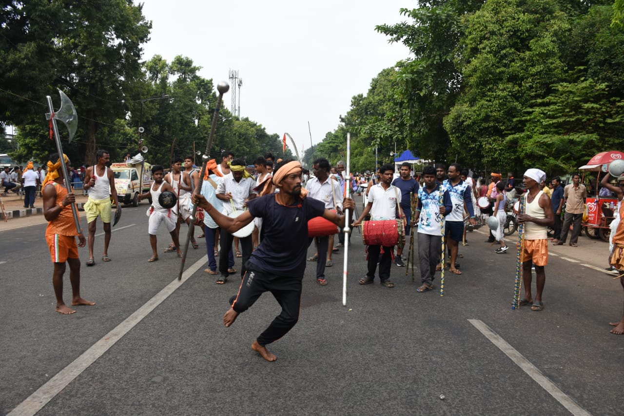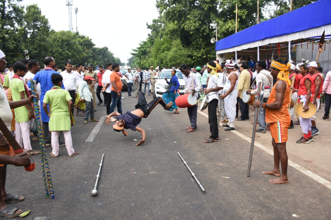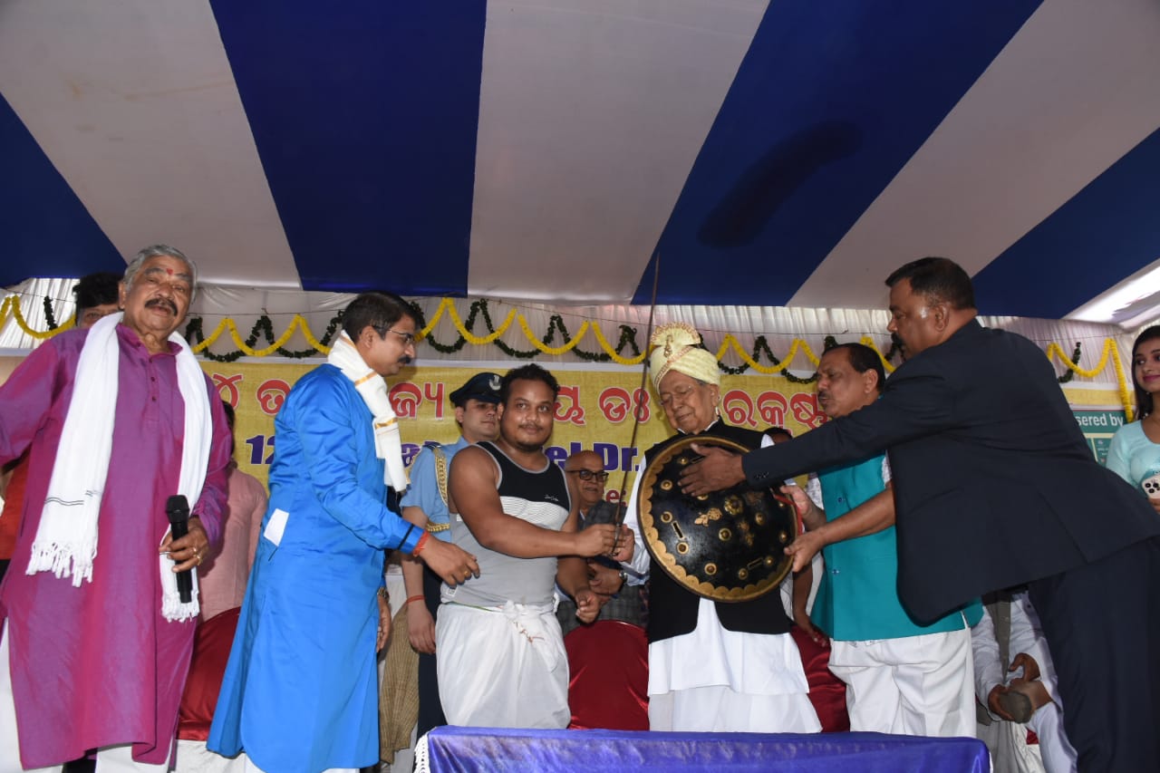 ଭୁବନେଶ୍ୱରସ୍ଥିତ ପିଏମଜିରେ ଡକ୍ଟର ହରେକୃଷ୍ଣ ମହତାବଙ୍କ ୧୨୪ତମ ଜୟନ୍ତୀ ଅବସରରେ ଆୟୋଜିତ ପାଇକ ଆଖଡ଼ା ଖେଳ କାର୍ଯ୍ୟକ୍ରମରେ ଛତିଶଗଡ଼ ରାଜ୍ୟପାଳ ବିଶ୍ୱଭୂଷଣ ହରିଚନ୍ଦନଙ୍କ ସହ ଅନ୍ୟ ମଞ୍ଚାସୀନ ଅତିଥି ବୃନ୍ଦ