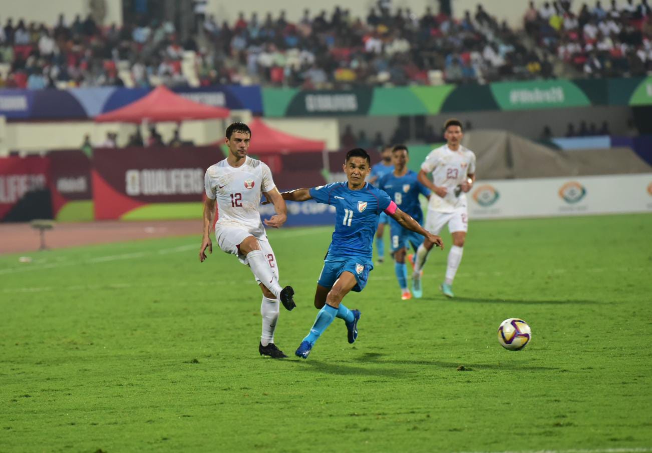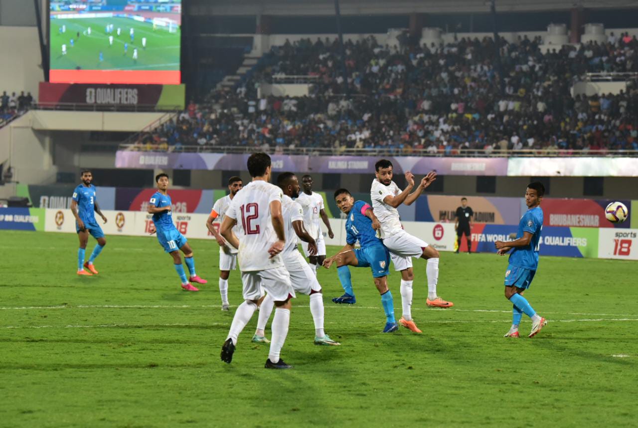 ଭୁବନେଶ୍ୱରସ୍ଥିତ କଳିଙ୍ଗ ଷ୍ଟାଡିଅମରେ ଫିଫା ବିଶ୍ୱକପ କ୍ୱାଲିଫାୟର ଫୁଟବଲ ମ୍ୟାଚରେ ପରସ୍ପରକୁ ଭେଟିଛନ୍ତି ଭାରତ ଓ କତାର