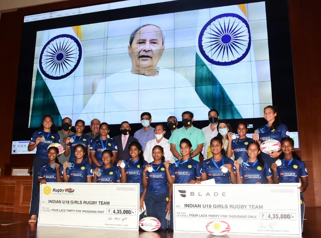 ଭୁବନେଶ୍ୱର ଲୋକସେବା ଭବନରେ ଭାରତୀୟ ଜାତୀୟ ମହିଳା(୧୮ବର୍ଷରୁ କମ) ରଗବି ଦଳକୁ ସମ୍ବର୍ଦ୍ଧନା