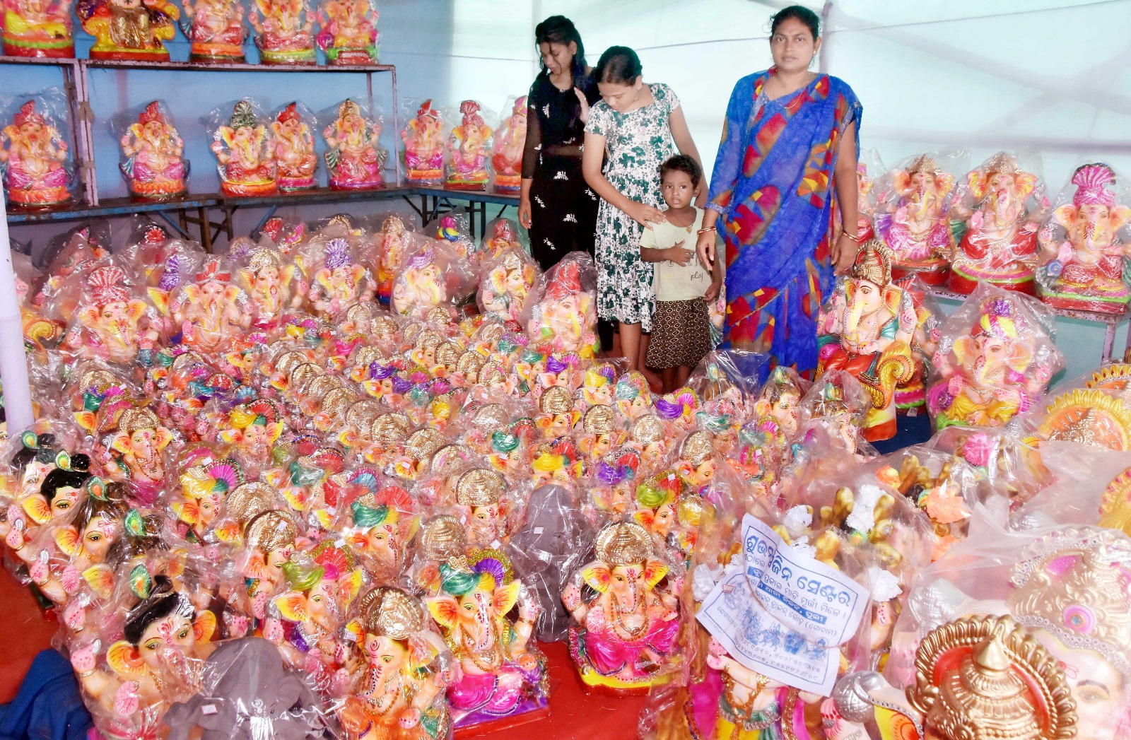 ପୁରୀ ଉପକଣ୍ଠସ୍ଥ ଏକ ଶୋରୁମରେ ବିକ୍ରୟ ପାଇଁ ଗଣେଶ ମୂର୍ତ୍ତିଗୁଡିକୁ ସଜାଇ ରଖାଯାଇଛି