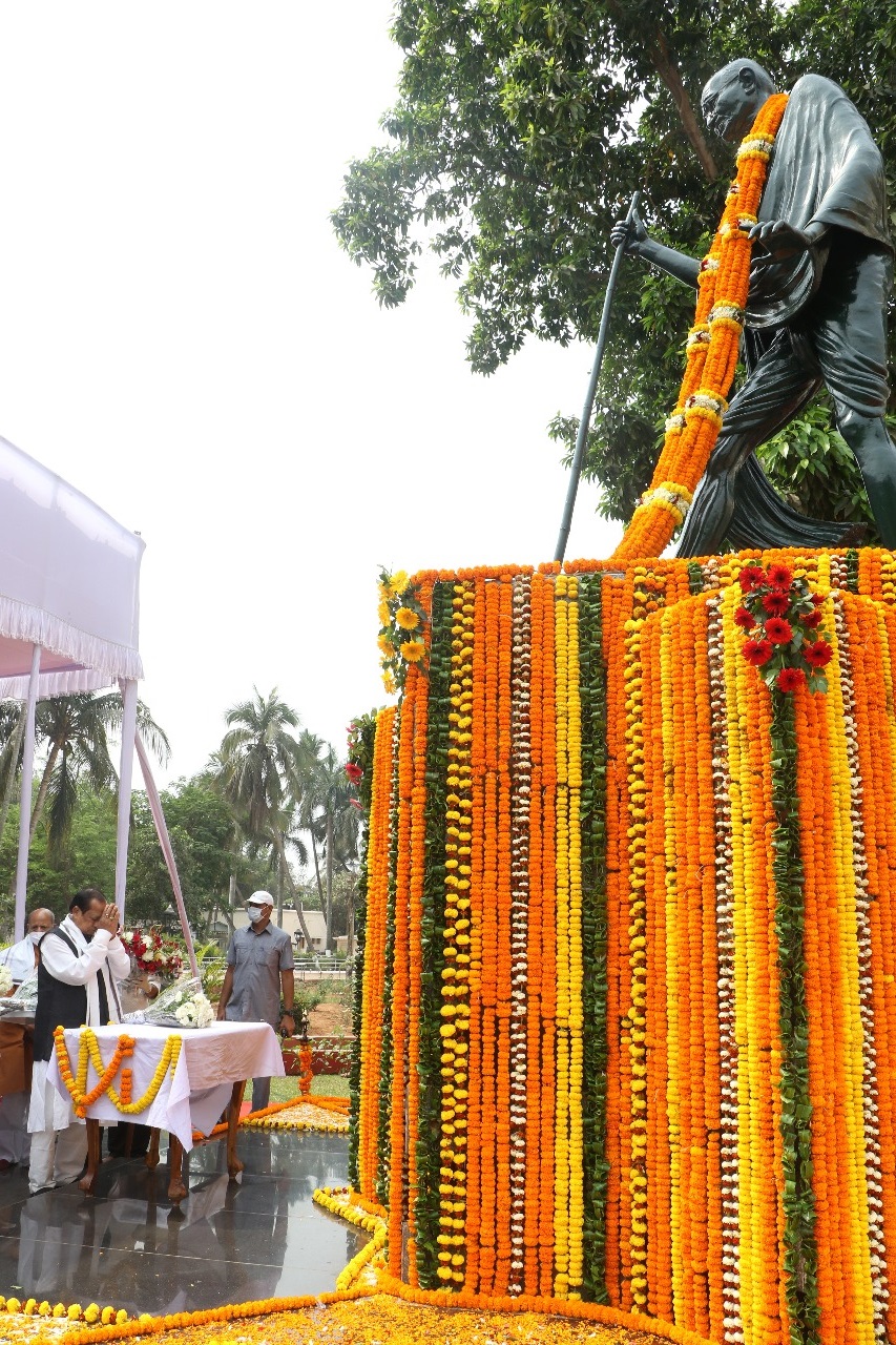 ମହାତ୍ମା ଗାନ୍ଧୀଙ୍କ ଓଡିଶା ଆଗମନର ୧୦୦ ବର୍ଷ ପୂର୍ତ୍ତି ଅବସରରେ ଓଡିଶା ବିଧାନସଭା ପରିସରରେ ଥିବା ଗାନ୍ଧୀଜୀଙ୍କ ପ୍ରତିମୂର୍ତ୍ତିରେ ବାଚସ୍ପତି ସୂର୍ଯ୍ୟନାରାୟଣ ପାତ୍ର ଶ୍ରଦ୍ଧାଞ୍ଜଳି ଜ୍ଞାପନ କରୁଛନ୍ତି