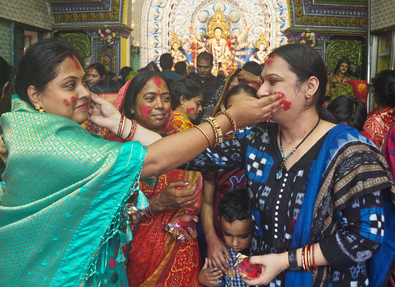 କଟକ ଶେଖ୍ ବଜାର ପୂଜା ମଣ୍ଡପରେ ଦଶହରାରେ ମହିଳାଙ୍କ ଦ୍ୱାରା ଅନୁଷ୍ଠିତ ପାରମ୍ପରିକ ସିନ୍ଦୁର ଖେଳ ଓ ଶ୍ରଦ୍ଧାଳୁଙ୍କୁ ଦହି ପଖାଳ ବଣ୍ଟନ