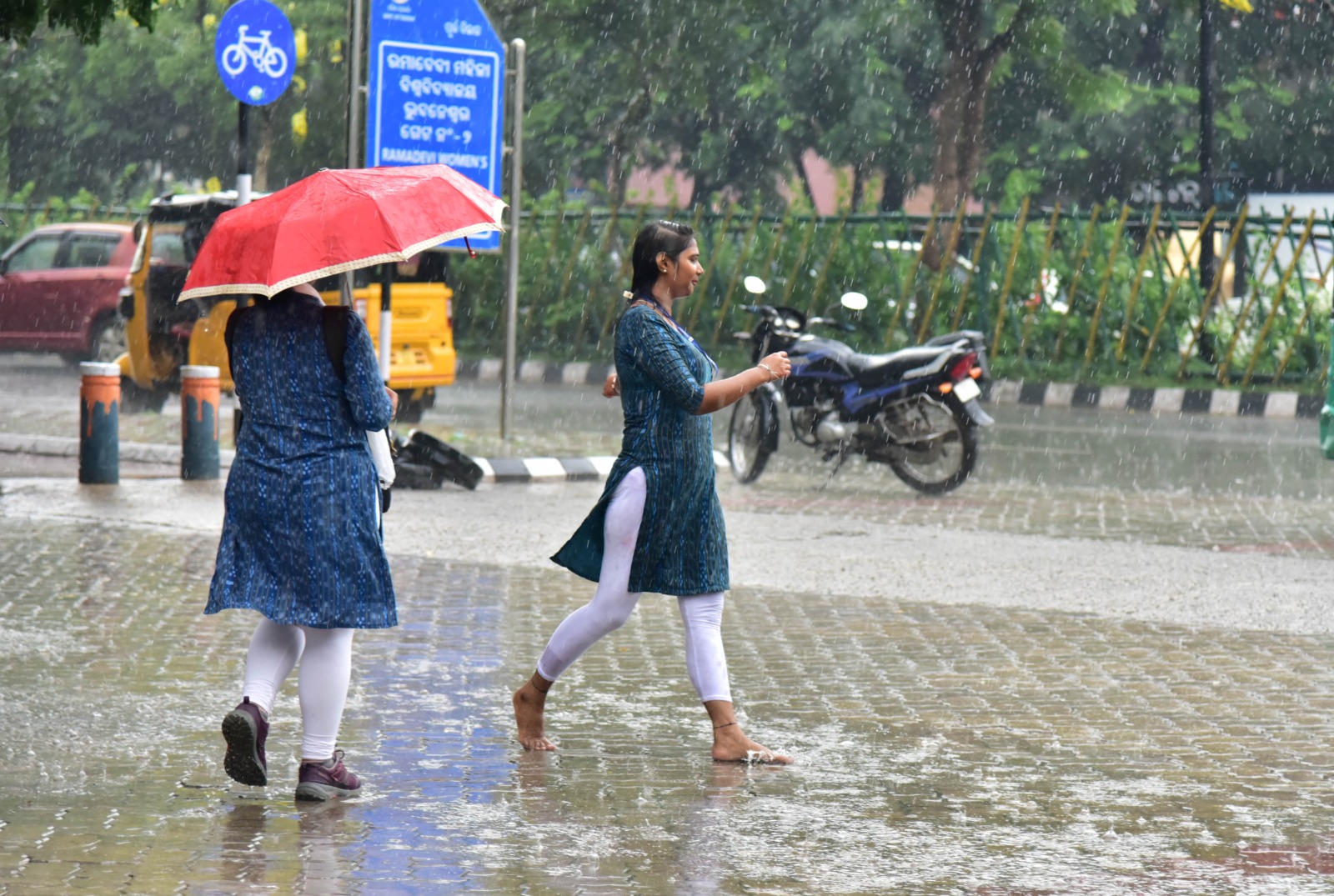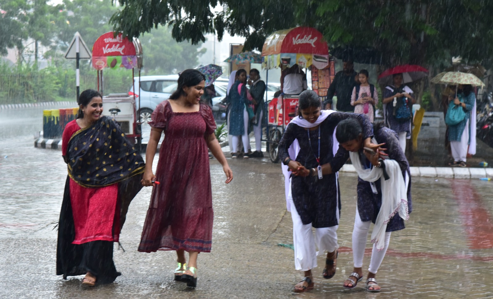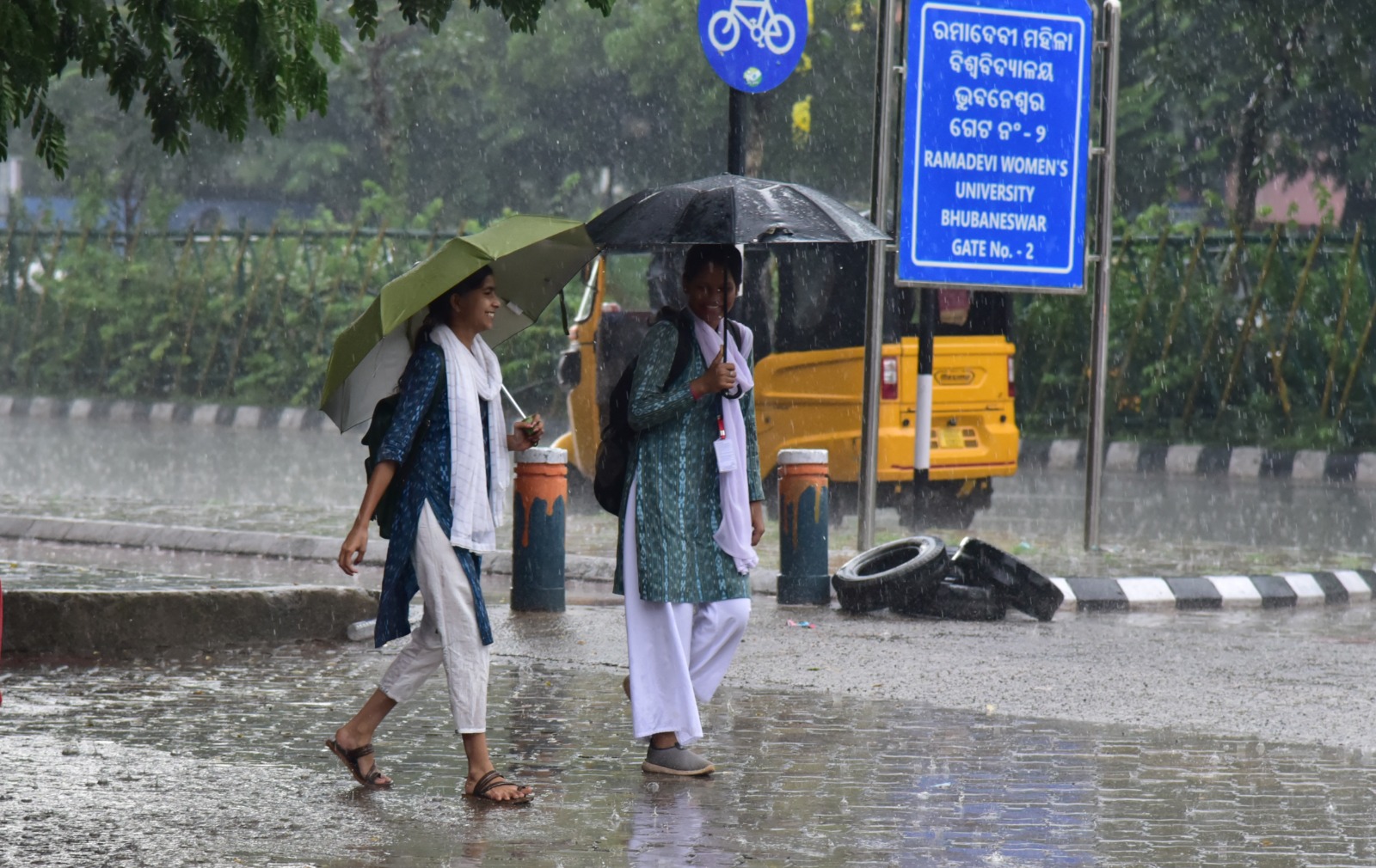 ରାଜଧାନୀରେ ମୌସୁମୀ ବର୍ଷାର ମଜା ନେଉଛନ୍ତି ଛାତ୍ରୀମାନେ
