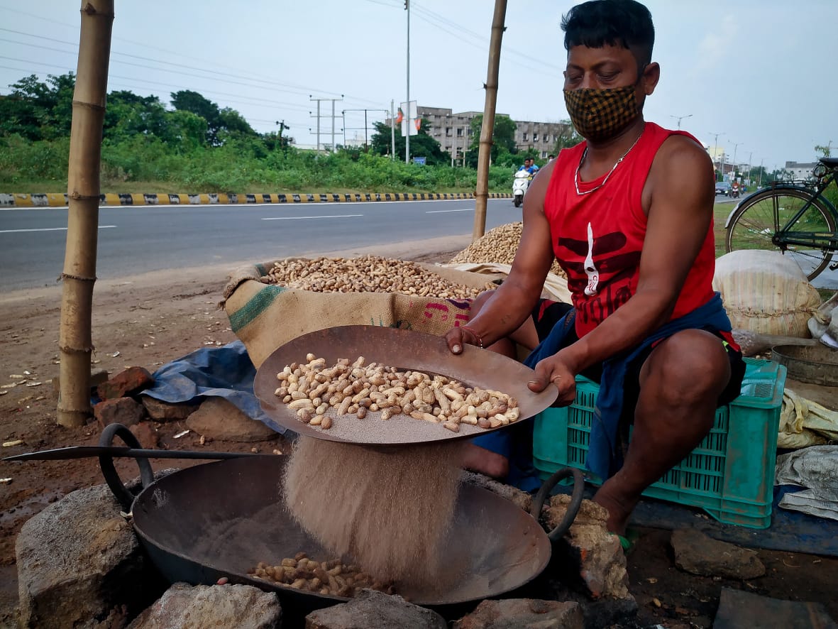 କଟକ ସିଡିଏ ରିଂ ରୋଡ଼ ପାର୍ଶ୍ଵରେ ବାଦାମ ଭାଜୁଛନ୍ତି ବ୍ୟବସାୟୀ