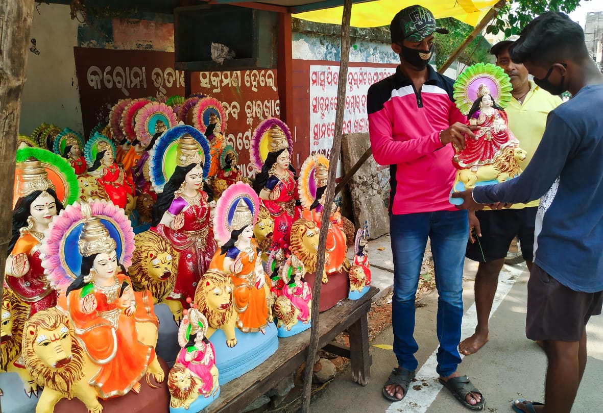 କଟକ ଚାନ୍ଦିନୀ ଚୌକରେ ଖୁଦୁରୁକୁଣୀ ମୂର୍ତ୍ତି କିଣୁଛନ୍ତି ଗ୍ରାହକ