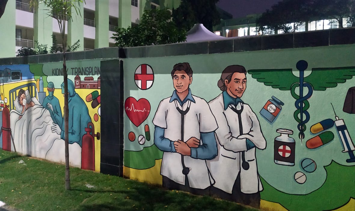 କଟକ ଏସସିବି ମେଡିକାଲ୍ କଲେଜ୍ ପ୍ଲାଟିନମ୍ ଜୁବୁଲି ପାଳନ ଅବସରରେ ପରିସରରେ ଥିବା ଏକ ପ୍ରାଚୀରକୁ ଚିତ୍ରିତ କରାଯାଉଛି