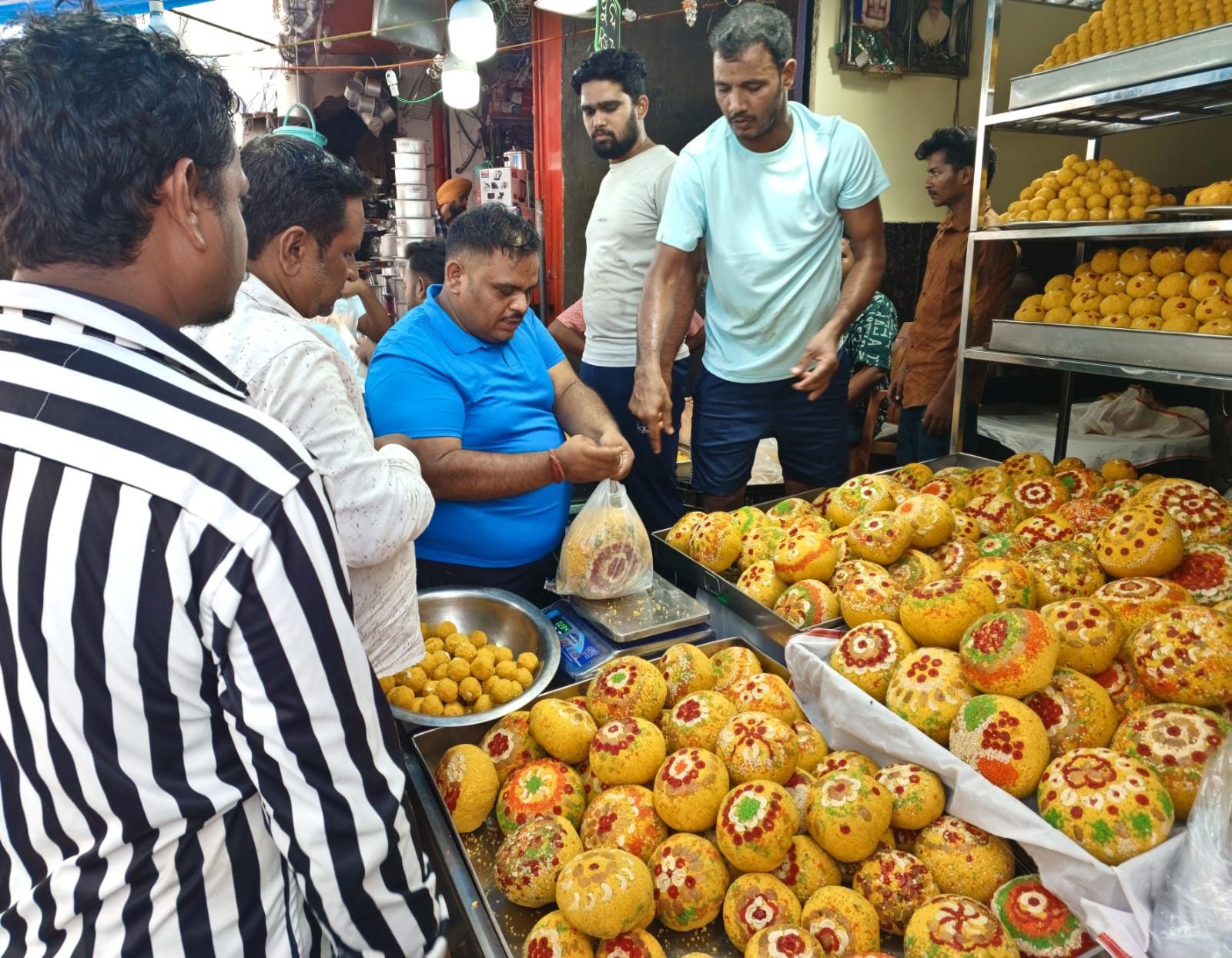 କଟକ ରାଣୀହାଟସ୍ଥିତ ଏକ ମିଠା ଦୋକାନରେ ଗଣେଶ ପୂଜା ଅବସରରେ ଲଡୁ କିଣିବା ପାଇଁ ଲୋକଙ୍କ ଗହଳି
