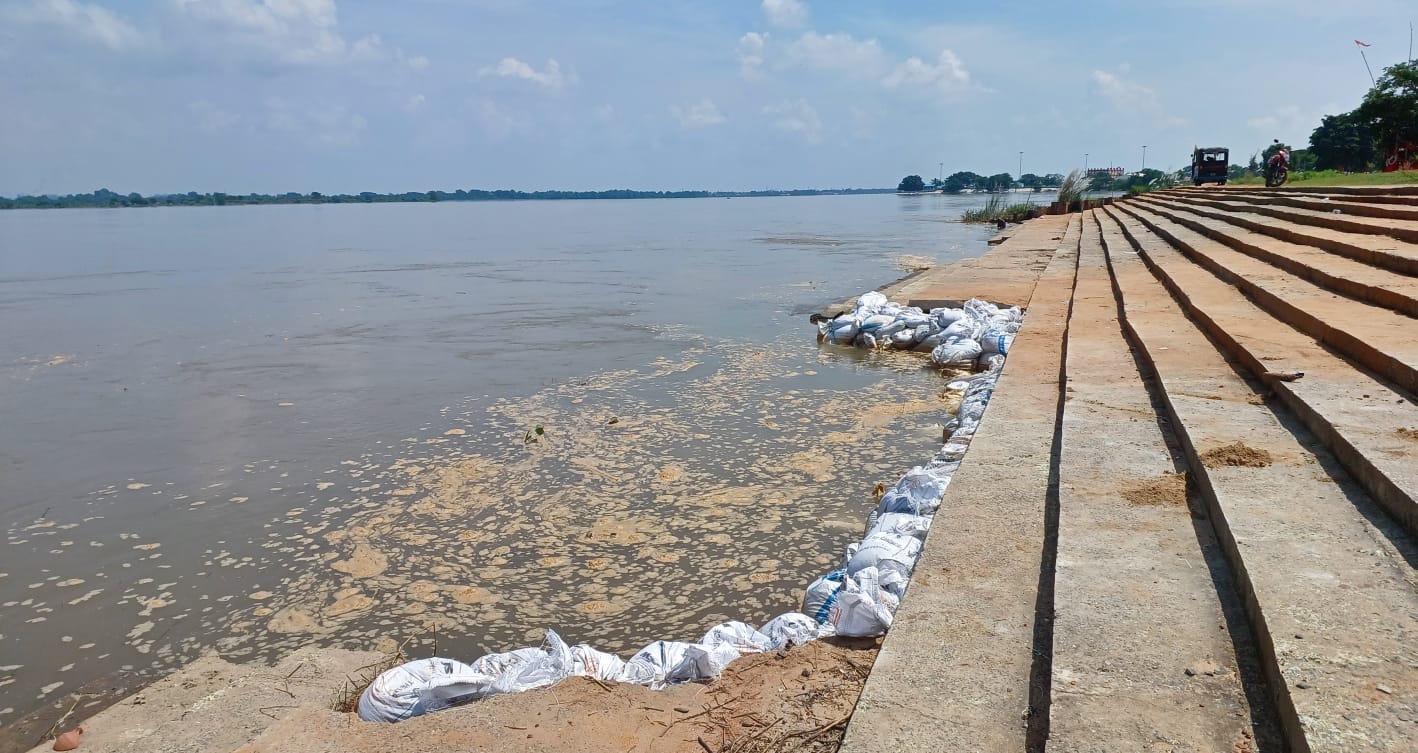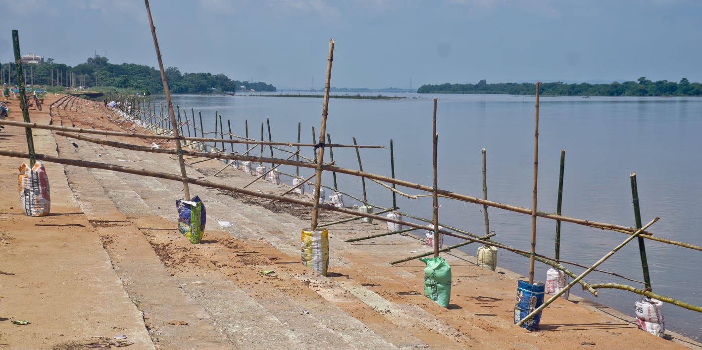 କଟକସ୍ଥିତ ବାଲିଯାତ୍ରା ତଳପଡ଼ିଆ ଗଡ଼ଗଡ଼ିଆ ଘାଟ ମହାନଦୀ ତଟ ପାର୍ଶ୍ଵରେ ଭୁଷୁଡ଼ି ପଡ଼ିଥିବା ସିମେଣ୍ଟ କଂକ୍ରିଟ ପାହାଚ ନିକଟରେ ବାଉଁଶ ବାଡ଼ ଦେଇ ଆବୃତ କରାଯାଇଛି