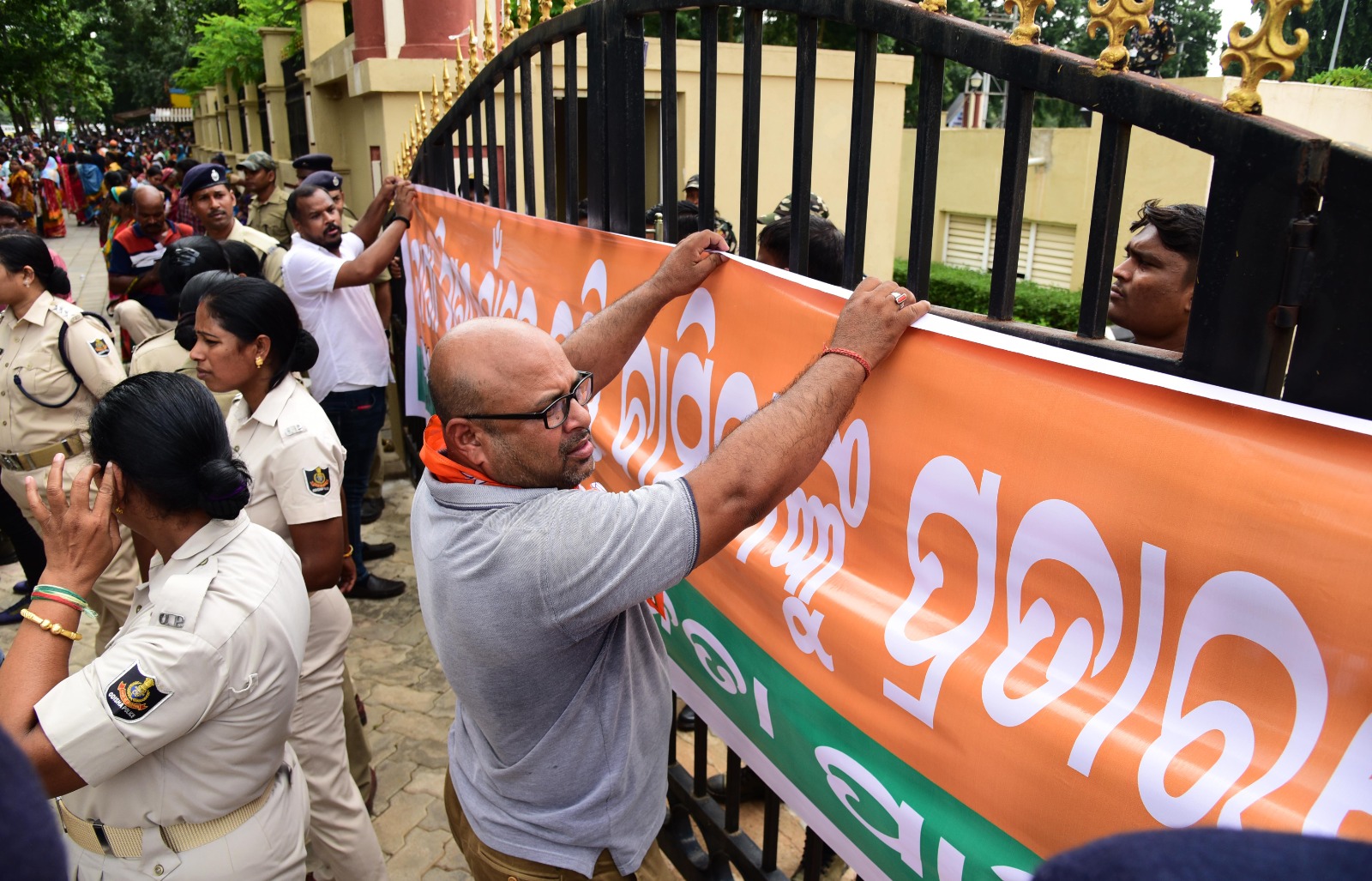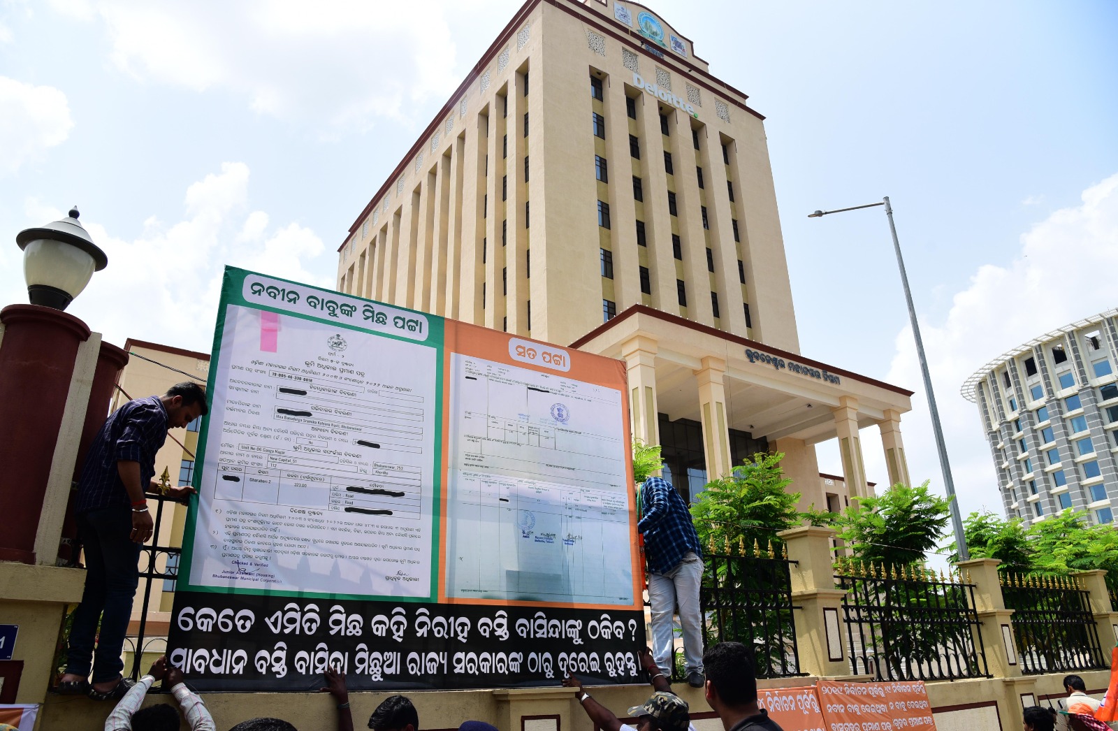 ବିଜେପି ସଦସ୍ୟ ଏବଂ ବସ୍ତି ବାସିନ୍ଦାଙ୍କ ପକ୍ଷରୁ ଭୁବନେଶ୍ୱର ବିଏମସି ଅଫିସ ସାମ୍ନାରେ ବିକ୍ଷୋଭ ପ୍ରଦର୍ଶନ