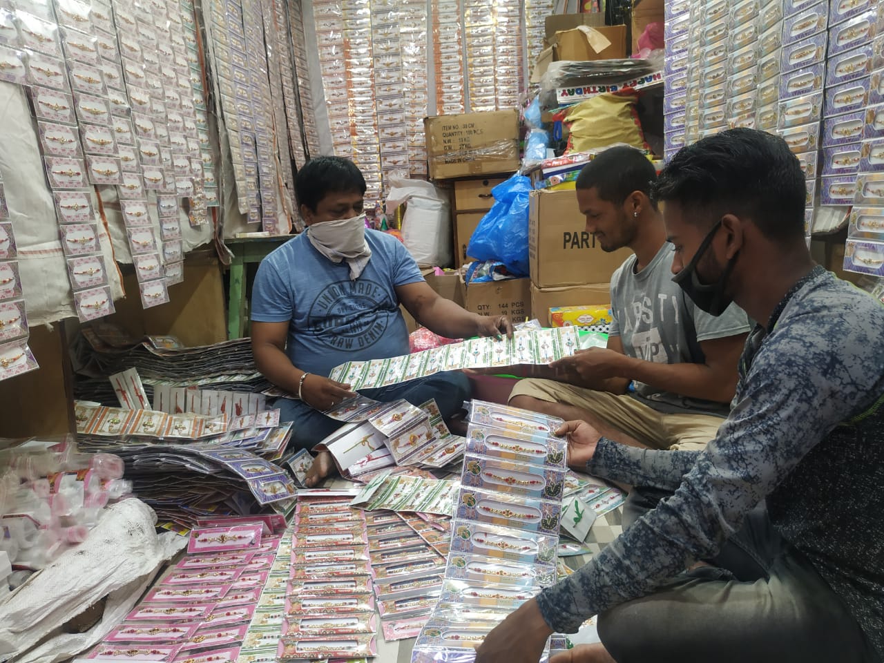 କଟକ ଚୌଧୁରୀ ବଜ଼ାରରେ ବ୍ୟବସାୟୀଙ୍କଠାରୁ ରାଖୀ କିଣୁଛନ୍ତି ଖୁଚୁରା ଦୋକାନୀ