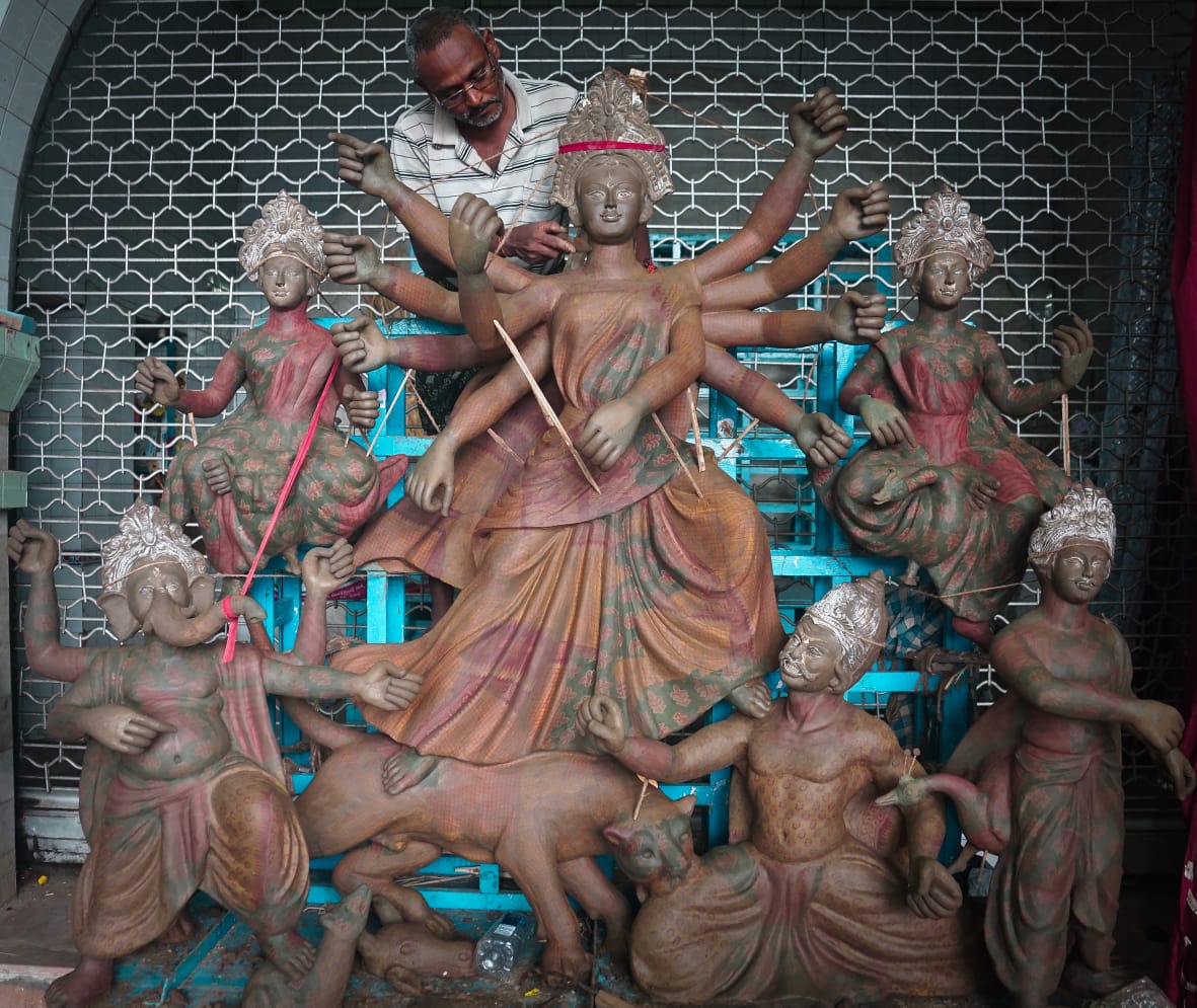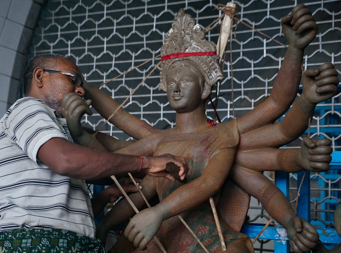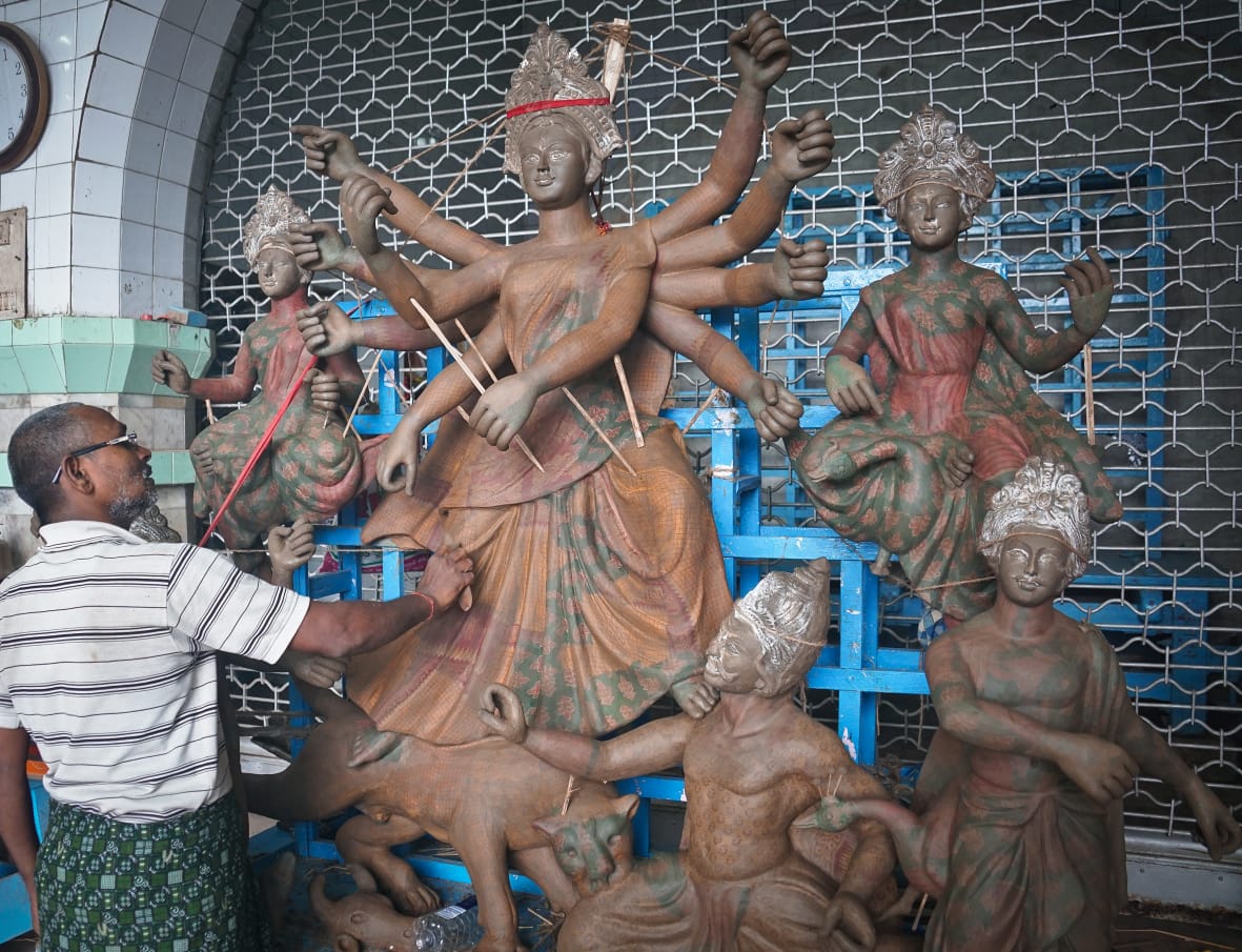 କଟକ ଚାନ୍ଦିନୀ ଚୌକ ପୂଜାମଣ୍ଡପରେ ଚାଲିଛି ମା’ ଦୁର୍ଗାଙ୍କ ମୂର୍ତ୍ତି ନିର୍ମାଣ